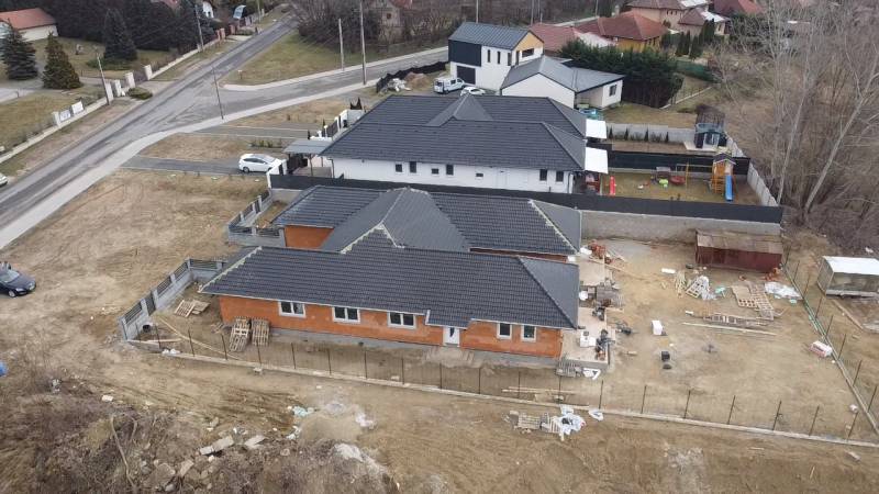 Veresegyházon kínálunk eladásra 1 db ikerház felet. Várható elkészülés 2025 vége.Szemből nézve a bal ikerfél van meg, szerződés után 2 hónapon belül kész.MŰSZAKI TARTALOM(az alapár tartalmazza)Tartószerkezet-vasbeton sávalap alapozás-lábazati falak - változó magasságú zsalukő 2 irányú vasalással-Szerelőbeton - 10 cm C 20625-16 kk-külső és teherhordó falak - POROTHERM N+F 30-áthidalók - PTH áthidalók km. tömör tégla felfalazással vagy vb. áthidalóval-válaszfalak - 10-es POROTHERM válaszfallap-födém - fafödém-fedélszék: 35 fokos nyeregtető függesztőműves-porhó elleni védelem - átlapolás és erősített pc fólia-Héjalás - TERRÁN ZENITH antracit színben, horg. acéllemez ereszcsatornávalSzigetelések-----talajpára elleni szigetelés - teljes felületen GV4-es lemez ragasztva-falon 10 cm Nikecell szigetelő - színezett keskenyvakolattal-talajon fekvő padlón - 2 x 4 cm lépésálló PS hab, esztrichezés-lábazaton - 8 cm XPS hab - szemcsés műgyanta lábazati vakolata-padlástér felől - 20 cm üveggyapot, alján párazáró fóliaNyílászárók-külső falban 3 rétegű üvegezésű ablakok, ajtók, külső ajtó-belső ajtók - utólag szerelt - 40.000 FT/db- árig-garázsajtó - szekcionált, távirányításúBelső kialakítás-mennyezet - gipszkarton, fémszerkezetes, vizes helyiségekben impregnált-falakon - festés két rétegben fehér színben-burkolatok-hidegburkolatok 6000 ft/m2 burkolólap árig (fal és padló)-laminált burkolatok 5000 FT/m2 laminált árig-redőnyök - nincsenek az árban-vakolások-belső festések - glettelés + festés fehér színben 2 rétegben-külső és belső ablakpárkányÉpület körül-kerítés -Terasz és erkély korlátokÉpületgépészet-vezetékezések, bekötések, órák, külső közművek-szaniterek - kád, zuhanytálca 40.000 FT/db árig-mosdó 15.000 FT/db árig-alapárban gázcirkó padlófűtéssel( + 4m Ft hőszivattyúval)