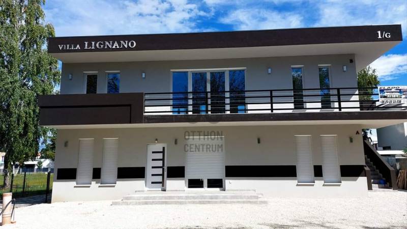 Siófok-Sóstón kiváló minőségű építőanyagokkal és kivitelezéssel épült nettó 76m2-es földszinti kertkapcsolatos lakás várja új tulajdonosát egy 2 lakásból álló társasházban.Az ingatlan családi házas övezetben helyezkedik el, a vízparttól 500 méterre.Várható átadása 2023 március-április hónap.Az ingatlan jellemzői:- 190 nm saját kertrész- 2 kocsi beállására lehetőség- Nappali + 3 hálószoba- 30-as falazat Porotherm okostégla- 15 cm homlokzati grafitos hőszigetelés- 3 rétegű műanyag nyílászárók- redőny, szúnyoghálóval- hűtő-fűtő klíma, elektromos radiátor- H-tarifás villanyóra- magas minőségű hideg és meleg burkolatok- CSOK igénybe vehetőAz ingatlan második otthonnak, vagy állandó lakhatás céljára kiváló lehetőség.Megtekintésért, bővebb információkért állok rendelkezésre a hét bármely napján