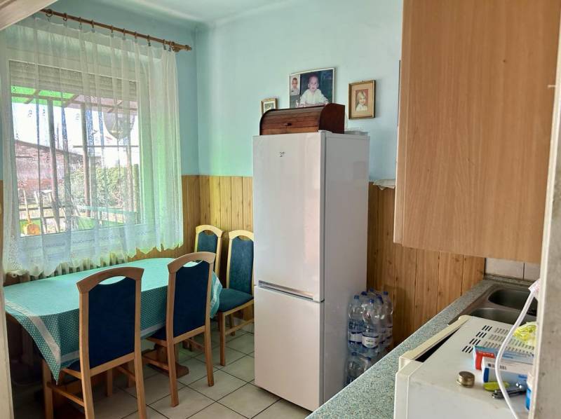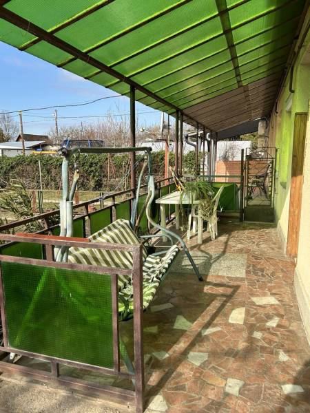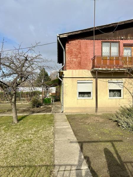 Soroksár Péteri majorban 2 szintes sorházi lakás, külön hatalmas kertrésszel eladó.Infrastruktúra: közelben buszmegálló, mellyel a város több központi része is könnyen elérhető.Újonnan átadott modern a játszótér az utca végében.Iskola, óvoda, bevásárlási lehetőség 1 km távolságon belül. Épület leírása:- 2 szintes tégla épület, szintenként 45-45 nm-el;- szintek közötti beton födém;- padlás szigetelés, pala tető;- teljes összközműves;- külön mérőórák;Lakás leírása:- földszint: nappali, konyha étkezővel, előszoba, fürdőszoba, lépcsőház;- emelet: 2 szoba, előtér- gázcírkó fűtés;- bútorozott konyha étkezővel;- alsó szinten műanyag nyílászárók redőnnyel;- felső szinten fa nyílászárók;- kádas fürdőszoba WC-vel.Sarok telek, mellékhelységekkel és saját, külön bejárattal rendelkező garázzsal.Hagyatéki ingatlan, ami teljes felújítást igényel ugyan, de a jelenlegi állapotában is lakható. Tarsásházi albetét, saját 749 nm kertrésszel, ami az alapító okiratban rögzítésre került.A felső szint, építési engedéllyel épült, de a használatbavételi engedély nem került beadásra a földhivatalhoz, így a térképszelvényen nem szerepel.Csendes, nyugodt családias, kertvárosi környezetben lévő ingatlant ajánlok azok részére, akik megunták a város \"zakatolását\" , és az otthonukban pihenésre vágynak, mindezt a főváros egyik kerületében, mindenhez közel.