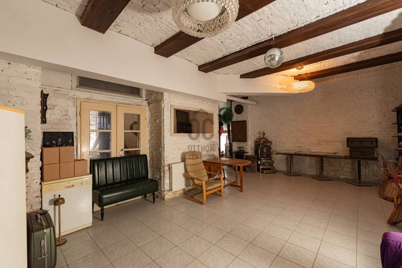 A IX. kerület körúthoz illetve Üllői úthoz közeli részén, Középső-Ferencvárosban, nyugodt, csendes, de nagy gyalogos forgalmú, kellemes környezetben eladó egy 160nm-es, kettő bejárattal rendelkező félszuterén üzlethelyiség. A jelenleg ketté osztott üzlet hat helyiségből és kettő zuhanyozóval is ellátott mellékhelyiségből áll. A fűtésről gáz cirkó gondoskodik. Az üzlethelyiség szükség esetén minden további nélkül összenyitható az felette elhelyezkedő, 86nm-es, háromszobás nagy belmagasságú lakással, ami szintén eladó. Arról tovább információkat honlapunkon talál. Az üzlethelyiség előnyös adottságainak köszönhetően számos funkcióra alkalmas. Vendéglátás, szépségápolás, üzlet, iroda, szolgáltatások széles skálája működtethető benne.