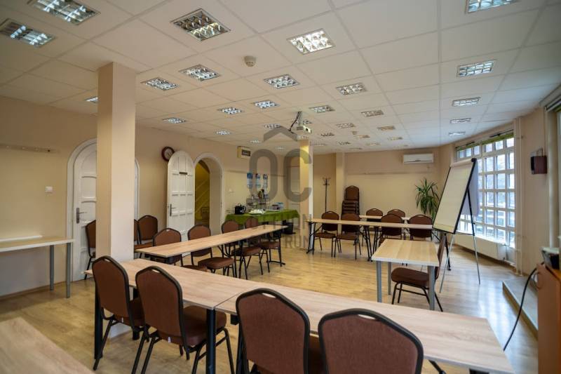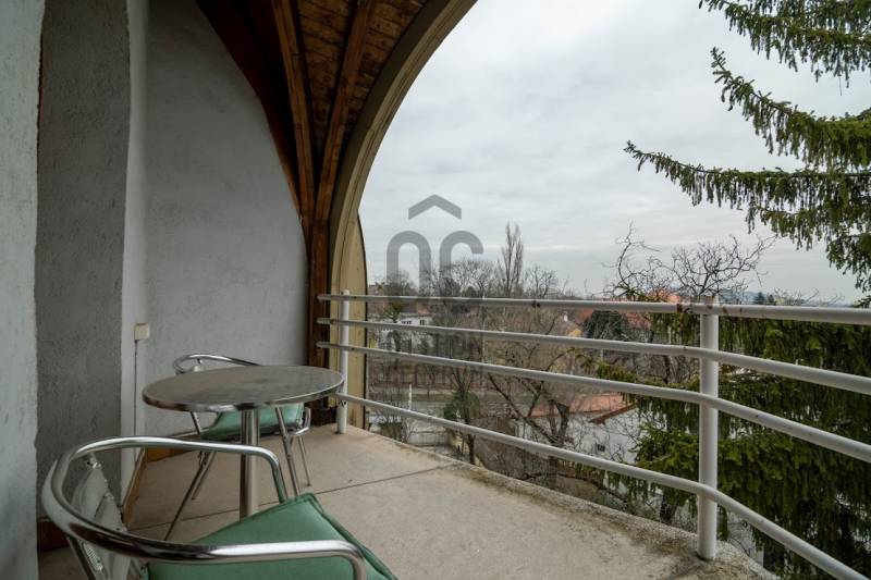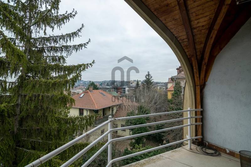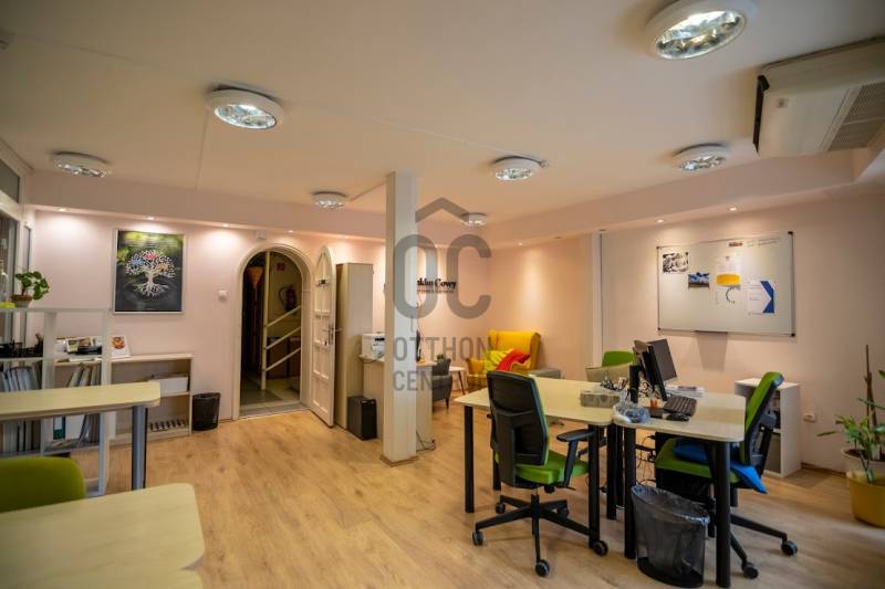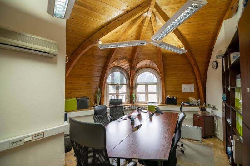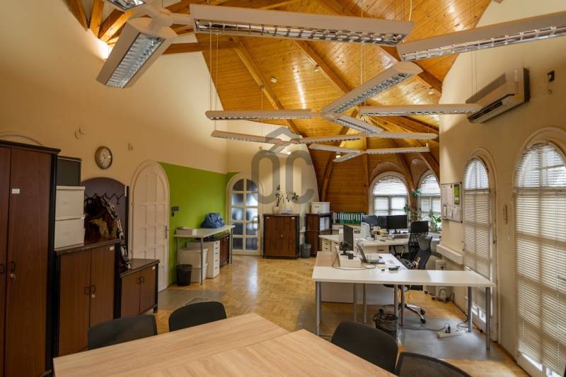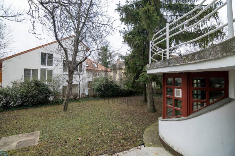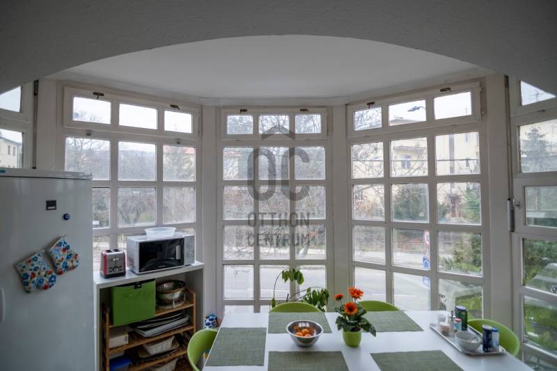 Hegyvidék bevásárlóközpont közvetlen közelében, Mártonhegy, Orbánhegy, Németvölgy találkozásánál 4 szintes egyedi megjelenésű irodaház eladó. Az épület tervezését, a magyar építészetet több évtizedre meghatározó MAKONA (Makovecz Tervező Iroda) végezte. Az ingatlan 770 nm-es telekre épült (jelenleg zöld park), hasznos alapterülete 532 nm. Több kicsi, közepes, illetve nagyszoba, valamint két nagyterem (jelenleg oktató és bemutató terem) lett kialakítva. Minden szinten találhatóak mellékhelyiségek (8 db.) és „várónak” kialakítható központi terek. Jelenleg 15 szobából áll. Tartozik hozzá még egy hatalmas kertre néző terasz és egy Gellért hegyre panorámás legfelső emeleti erkély is.Az épület be van kötve a többzónás biztonsági rendszerbe is, amely az összes érintett nyílászárót, valamint az összes belső teret felügyeli.Az ingatlan többzónás, szintenkénti méréssel és biztosítással ellátott villamos hálózattal rendelkezik (valamint magas szintű az egyéb hálózati kiépítettség is a szerkesztői munkából következően). Az épület fűtési tüzelőanyaga gáz, megoldása 2 db professzionális gázkazán. Az épület hővesztése a speciális formája és vákuumos hőszigetelő üvegei miatt, alacsony. Csendes környezete ellenére könnyen megközelíthető több féle busszal és villamossal egyaránt. A nyugati sztrádák könnyű megközelíthetősége szintén előny lehet. Parkolás a környező kis utcákban díjtalan. A ház előtt fizetős (de akár 20 gépkocsi számára, is kialakított).Az épület előtt és mögött lévő kert átalakításával lehetőség van új parkolókat kialakítani. Az épület külső részén lehetőség van lift beépítésére. Kialakításának és elhelyezkedésének köszönhetően remek lehetőség akár szépészeti központ, egészség központ, nagykövetség, cégközpont, oktatási központ stb hosszútávú kialakítására.