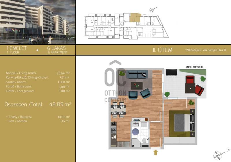 Újépítésű lakások-Megújuló energiávalEnergia takarékos 2026 elején költözhető újépítésű lakások.Budapest XIX. kerületének kiemelkedő közlekedési pontján épülő, modern lakónegyed olyan új közösségi teret hoz létre, ahol minden generáció megtalálja a helyét.Metró, vonat és több buszjárat, biztosítja, hogy nagyon rövid idő alatt Budapest centrumába, vagy a Liszt Ferenc repülőtérre jussanak az itt élők.Az épülő projekt lakásai alkalmasak, rövid és hosszú távú kiadásra, több generáció egymás mellett élésére.A lakóépület komplexum négy ütemben épül fel, jelenleg a II. ütem építése zajlik.Az épületegyüttesben összesen 350 lakás készül, ebből az I. ütemben 98 db, a II. ütemben 118 db. épül meg.Az I. ütem lakásai 2024 év végén átadásra kerültek.A lakások és az épületek között zárt átriumos folyosókon keresztül biztosított az átjárás.A földszint + 8 emelet magas épületet elegáns, fákkal, cserjékkel tarkított terek veszik körül.A lakások lépcsőházanként két-két lifttel közelíthetőek meg.A lakások típusai: Stúdió, 1 szobás, 2 szobás, 3 szobásMinden lakástípus elérhető jelenleg.A lakások jellemzői:Minden lakás rendelkezik erkéllyel vagy terasszal, és néhány exkluzív lakás pedig saját zöldrésszel.•A lakások hűtése és fűtése alacsony energia igényű, hőszivattyús rendszerű, mennyezeti technológiával biztosított•Tágas szobák és erkélyek, nagy, nyitott terű nappalirészek•Konyha, amely külön van, de mégis a nappali része•Nagy üvegfelületek, hőszigetelt üvegezésű műanyag nyílászárók formájában, amelyek sok természetes fényt biztosítanak•A szobákban nedvesség és cseppálló laminált padló•Igényes, minőségi kerámia padlók és falburkolatok a fürdőszobákban és WC-kben,•Az apartman típusától függően kádak vagy zuhanyzók állnak rendelkezésre•A közös helyiségek energia igénye napelemes rendszerrel megoldott.A gépkocsik elhelyezésére a teremgarázsban lesz lehetőség a -1 és -2 szinteken, ahol számos különálló és zárható tárolóhelyiség és elektromos töltési lehetőség is kialakításra kerül.Garázs:Méret:11,25nm-18,3nmA jelen adatok tájékoztató jellegűek, ezért a Beruházó (sem a hirdető) azok változásával, vagy bármely attól való eltéréssel kapcsolatban semmilyen kötelezettséget, vagy felelősséget nem vállal.Az alaprajazokon ábrázolt berendezési tárgyak és bútorok, a burkolatok megjelenése nem képezi a szerződés tárgyát. A pontos felszereltségről a műszaki leírásban olvashat bővebben.Az aktuális lakáskínálatról és árakról érdeklődjön telefonon!Projekt bemutatásaEnergia takarékos újépítésű lakások.A II. ütem lakásai 2026 elején költözhetőek.Az V. ütem lakásai 2027 elején költözhetőek.Budapest XIX. kerületének kiemelkedő közlekedési pontján épülő, modern lakónegyed olyan új közösségi teret hoz létre, ahol minden generáció megtalálja a helyét.Metró, vonat és több buszjárat, biztosítja, hogy nagyon rövid idő alatt Budapest centrumába, vagy a Liszt Ferenc repülőtérre jussanak az itt élők.Az épülő projekt lakásai alkalmasak, rövid és hosszú távú kiadásra, több generáció egymás mellett élésére.A lakóépület komplexum több ütemben épül fel, jelenleg II. és az V. ütem építése zajlik.Az épületegyüttesben összesen 350 lakás készül, ebből az I. ütemben 98 db., a II. ütemben 118 db., az V. ütemben 58 db épül meg.Az I. ütem lakásait 2024 év végén a lakók birtokba vették. A lakások és az épületek között zárt átriumos folyosókon keresztül biztosított az átjárás.A földszint + 8 emelet magas épületet elegáns, fákkal, cserjékkel tarkított terek veszik körül.A lakások lépcsőházanként két-két lifttel közelíthetőek meg.A lakások típusai: Stúdió, 1 szobás, 2 szobás, 3 szobás, 4 szobásMinden lakástípus elérhető jelenleg.A lakások jellemzői: Minden lakás rendelkezik erkéllyel vagy terasszal, és néhány exkluzív lakás pedig saját zöldrésszel.•A lakások hűtése és fűtése alacsony energia igényű, hőszivattyús rendszerű, mennyezeti technológiával biztosított•Tágas szobák és erkélyek, nagy, nyitott terű nappalirészek•Konyha, amely külön van, de mégis a nappali része•Nagy üvegfelületek, hőszigetelt üvegezésű műanyag nyílászárók formájában, amelyek sok természetes fényt biztosítanak•A szobákban nedvesség és cseppálló laminált padló•Igényes, minőségi kerámia padlók és falburkolatok a fürdőszobákban és WC-kben, •Az apartman típusától függően kádak vagy zuhanyzók állnak rendelkezésre•A közös helyiségek energia igénye napelemes rendszerrel megoldott.A gépkocsik elhelyezésére a teremgarázsban lesz lehetőség a -1 és -2 szinteken, ahol számos különálló és zárható tárolóhelyiség és elektromos töltési lehetőség is kialakításra kerül.Garázs: Méret:11,5nm-18,25nmAz árakról érdeklődjön az értékesítőnél.Tároló:Méret 4,2nm-14,9nmAz árakról érdeklődjön az értékesítőnél.A jelen adatok tájékoztató jellegűek, ezért a Beruházó (sem a hirdető) azok változásával, vagy bármely attól való eltéréssel kapcsolatban semmilyen kötelezettséget, vagy felelősséget nem vállal.Az alaprajazokon ábrázolt berendezési tárgyak és bútorok, a burkolatok megjelenése nem képezi a szerződés tárgyát. A pontos felszereltségről a műszaki leírásban olvashat bővebben.Az aktuális lakáskínálatról és árakról érdeklődjön telefonon!