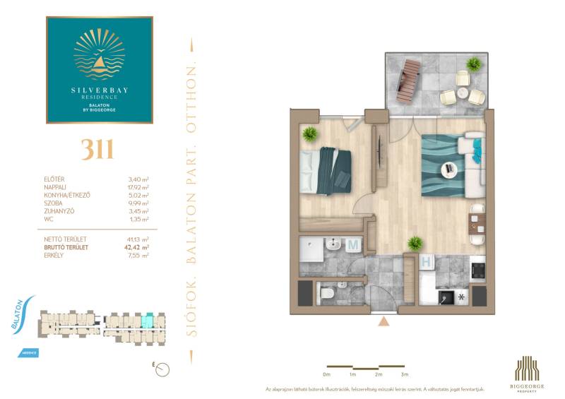 Projekt bemutatásaPEZSGÉS ÉS NYUGALOMEgyesíti mindazokat az előnyöket, amelyek oly vonzóvá teszik a Balaton fővárosát: a pezsgés és a nyugalom egyszerre található meg, ráadásul a számtalan kikapcsolódási lehetőség mellett egyre több fine dining étterem is fellelhető ebben a térségben.A PROJEKTRŐLA Silverbay Residenceben 69 egyedi elrendezésű lakást kínálunk, 32-145 m2 közötti méretekben, a leginnovatívabb építészeti megoldásokkal, kültéri medencével és minőségi anyaghasználattal. Minden lakáshoz tágas terasz tartozik, parkolás az arra a célra kialakított mélygarázsban és felszíni parkolókban biztosított. Minden lakószint megközelítését lift biztosítja a teremgarázsból.Az épület közvetlen környezetében számtalan kikapcsolódási lehetőséget találunk, a város zajától mégis távol. Minden lakáshoz erkély tartozik, a földszinten privát kertek, a legfelső emeleten panorámás tetőteraszok emelik az otthonok értékét. A kertben kültéri medence is kialakításra kerül, így biztosítva a változatos vízparti időtöltést.LOKÁCIÓ:A Silverbay Residence Siófokon a Deák Ferenc sétányon, közvetlenül vízparti elhelyezkedéssel kínál 69 egyedi elrendezésű lakást. Siófok a déli part központja. A Budapesttől 1 órányi autótávolságra fekvő város változatos kikapcsolódási lehetőségeket rejt.Az épület teljesíti a 7/2006. TNM rendelet közel nulla energiaigényű épületre vonatkozó követelményeit.