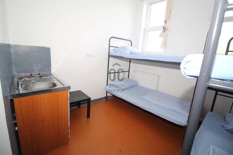 Megvételre kínálom a 10. kerület Óhegy részén ezt az 59 szobás munkásszállót!Az ingatlan összes hasznos alapterülete 1500 nm, amiben található 59 db szoba saját fürdővel, raktárak, konyha, recepciós pult és büfé, fedett dohányzó - pihenő, mosókonyha és egyéb kisegítő helyiségek. Jelenlegi kapacitás kb. 130-150 fő, 1-2-4 fős szobákban vegyesen, jellemzően emeletes ágyak felhasználásával.Ablakai korszerű, pár éve cserélt műanyag, hang és hőszigetelt nyílászárók.Fűtése házközponti, jelenleg vegyes tüzelésű kazán, amit fával fűtenek, lapradiátor hő leadókkal.A meleg víz folytonos ellátását két (kb. 1000liter/500 literes) HMV tartály biztosítja.Az ingatlan CÉG tulajdonban van, céggel együtt is megvásárolható!A vételár részét képezi a teljes bútorzat, gépesítés és az üzemeléshez szükséges egyéb ingóságok.