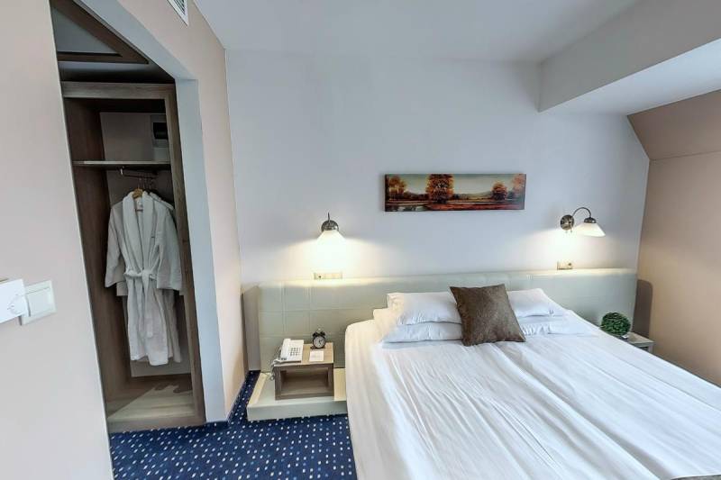 Velencei tó partjától 10 perc sétányira kínálok eladó SPA létesítményekkel gazdagon felszerelt ClUBHOTEL-t.A szálloda 12 szobával rendelkezik 5 standard és 7 superior megoszlásban, melyből 9 átalakítható két különálló ágyas elhelyezésre. Nem a nagy létszám volt a cél, hanem az intimitás, személyre szabottság. A szobák tagolt elrendezéssel helyezkednek el 5-4-3 egymás melletti csoportban.A mélygarázs szintén a privát, anonim megjelenést szolgálja, a gépkocsik biztonsága mellett. Minden szobához tartozik egy melygarázsos gépkocsihely. E mellett a SPA létesítmények igénybe vevő vendégek részére az udvaron biztosított 20 gépkocsi számara parkolóhely.A szobák felszereltsége a trendnek megfelelően: légkondicionáló, mini bár, tv, wifi, szobasafe, választhatóan zuhanyzós vagy kádas fürdő kialakítással. Az étterem a szállóvendégeken felül is képes vendégeket fogadni 35-40 fő egyszerre történő leültetésével. Szolgáltatás a reggelis, félpanziós, illetve teljeskörű ellátás lehet. A fa burkolatú mediterrán hangulatú grill terasz további 30-35 fő számára biztosít hangulatos étkezési, valamint rendezvény lehetőséget.Spa részleg a szobák számához képest nagy. Törekvés a - gyógyászati turizmusba való intenzív bekapcsolódás, kis központtá válás. Ehhez elengedhetetlen a spa terület megfelelően nyugodt nagysága. Választható: finn sauna , kültéri (egyedi építésű, polgárdi, nadapi kőből, bontott téglából , gőzölt csomómentes nyírfa lambériából) fatüzeléses szauna 14 fő befogadású, panoráma három rétegű üvegezéssel, infra szauna, alacsony hőmérsékletű (38-44 fok C ) gyermek szauna, gőzkabin, sóterápiás szoba, gyógynövénykamra , kültéri jakuzzi, beltéri jakuzzi, 7,5x15 m -es fedett úszómedence, (egyedi mintázattal olasz ponti üvegkerámia mozaikkal kirakva) masszázs és élmény elemekkel, vízmélység 1,2 m úszómester nélküli üzemeltetési lehetőséggel. Gyermek pancsoló medence beltérben, Kneipp lábmasszírozós medence, álló szolárium. Nyári időszakban(májustól-októberig) napozóteraszos kültéri hűsítő gyerekmedence. Vízmélység 10cm-1 méterig, így használhatják akár pár hónapos gyermekek is.Sportpályák: két műanyagpadlós (izületkímélő) fallabdapálya, öntött salakos teniszpálya, 20x40m-es palánkos műfüves focipálya. A létesítmény teljes egészében kerített, távirányítással zárható kapuval, beléptetőrendszerrel mind a kaput öltözőket (férfi, női) szobákat illetően. Kedvelt konferencia helyszín cégek részére a 20-50 fő befogadására alkalmas konferenciaterem miatt is! Az épület teljes területe padlófűtéses központi 100 kW-os Remeha gázkazánnal. Napkollektorok szolgálják (kiegészítésként) a használati melegvizet, bedolgoznak a medence fűtésébe. Szintén besegít a geotermikus rendszer is a fűtési -hűtési rendszeren felül is. Mind a kollektor mind a geotermikus hőszivattyú a német Stiebel cégtől származik.Konyhája teljesen felszerelt, egyedi pizzasütő kemencével kiegészítve.A száloda és létesítményei egész évben üzemeltethető. Teljes felszereléssel, berendezéssel eladó!A Szálloda jelenleg nem üzemel.Bővebb információért hívjon, tájékoztatom!