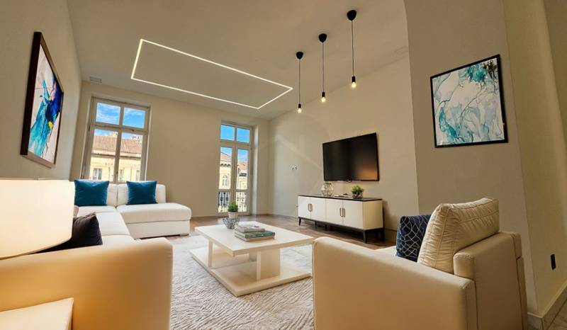 Luxus otthon a Bazilika szomszédságában: Exkluzív lehetőség Budapest szívében!Fedezze fel ezt a kivételes ingatlant, amely páratlan elhelyezkedésével és lenyűgöző adottságaival minden tekintetben megfelel a luxus otthonra vágyók és befektetők elvárásainak. Az V. kerület egyik legkeresettebb részén, a Bajcsy-Zsilinszky úton, mindössze néhány lépésre a Szent István Bazilikától, egy 116 négyzetméteres, prémium minőségben felújított, tágas lakás várja új tulajdonosát.Az ingatlan kifinomult eleganciáját a gondosan tervezett belső terek és a modern megoldások tökéletes harmóniája adja. Négy világos, tágas szoba és egy mosókonyha biztosítja a család vagy vendégek kényelmét, míg a két stílusosan kialakított fürdőszoba az exkluzív életérzést erősíti. A 2 négyzetméteres erkélyről elénk tárul Budapest nyüzsgő városa, tökéletes helyszín a kikapcsolódásra, miközben élvezhetjük a belváros pezsgő atmoszféráját. Az ingatlan bútorozatlanul kerül értékesítésre, a képek belső építész által tervezett látványtervek, így az új tulajdonos saját ízlése szerint alakíthatja ki az otthonát.A lakás luxus színvonalú felújításon esett át, amely során a legmodernebb technológiákat és anyagokat használták fel. A padlófűtés és az okoskapcsolók a kényelmet szolgálják, míg az ingatlan egész területét bejáró LED hangulatvilágítás és a nagy belmagasság különleges, tágas atmoszférát teremt. Az amerikai konyha egyedi tervezésű, modern kialakításával és prémium gépeivel a legmagasabb igényeket is kielégíti.Az ingatlan okos otthon rendszerrel felszerelt, amely lehetővé teszi az energiatakarékos, mégis kényelmes életvitelt. Ez a modern lakás nemcsak esztétikailag nyújt luxust, hanem a technológiai újítások révén is a legmagasabb kényelmi szintet kínálja.A város szívében elhelyezkedő ingatlan rendkívül jól megközelíthető, a környék kiváló közlekedési csomópontjai és infrastruktúrája révén Budapest minden pontja könnyen elérhető. A Bajcsy-Zsilinszky út környéke emellett bőségesen ellátott üzletekkel, éttermekkel és szolgáltatásokkal, így minden szükséges kényelem adott az itt élők számára.Ez a csendes, mégis központi elhelyezkedésű, tehermentes lakás azonnal költözhető. Fiatal párok, családok és befektetők számára egyaránt ideális választás, hiszen nemcsak egyedi otthont biztosít, de hosszú távú hozamot is kínálhat bérbeadás esetén.Ne hagyja ki ezt a páratlan lehetőséget! Egy exkluzív, modern lakás várja új tulajdonosát Budapest belvárosának egyik legnívósabb részén, mindössze egy karnyújtásnyira a Szent István Bazilikától. Vegye fel velem a kapcsolatot további részletekért és a megtekintés időpontjának egyeztetéséért!