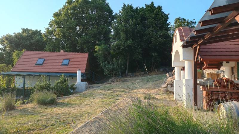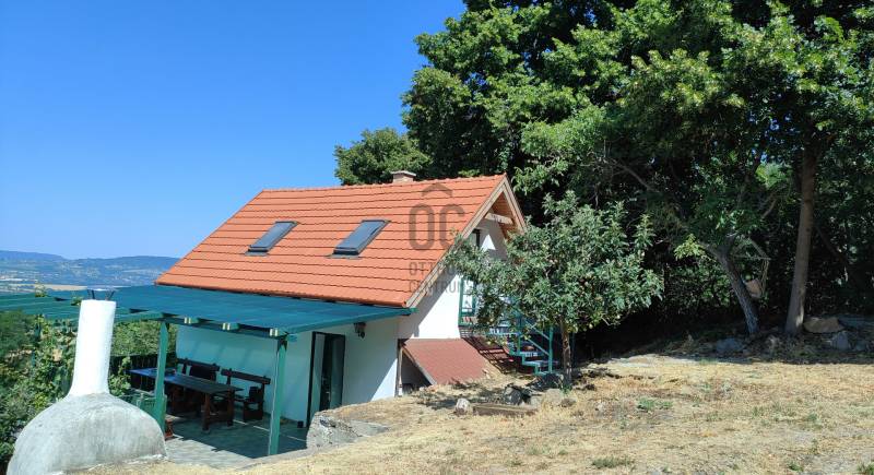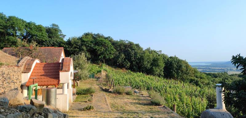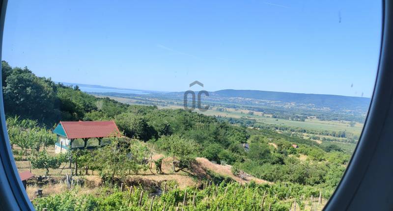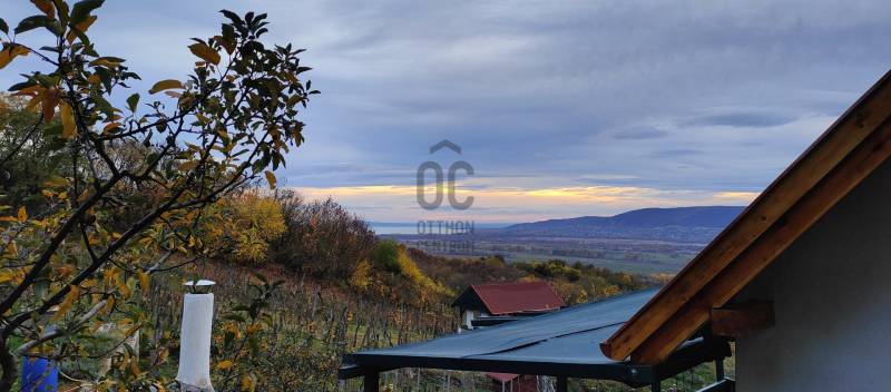 Szent György-hegyen Balatonra örök panorámával bíró varázslatos birtok, amiről mindenki álmodik!Kiemelt megbízás kizárólag az OTTHON CENTRUM kínálatában!Az ingatlanpiacon évről évre felértékelődő Badacsonyi borvidék egyik kiemelkedő gasztro, bor és turisztikai lokációja a Szent György-hegy, melynek nyugati oldalán helyezkedik el ez a különleges fekvésű présház nyaralós ingatlan.A hegyre felvezető aszfaltozott dűlőút mentén egy idő után elfogynak a présházak s amikor már csak az erdő ölel körül bennünket minden oldalról, akkor érkezünk meg ehhez a kivételes adottságú, több szintes, jó állapotú birtokhoz.A természetközeli présház és a különálló hatalmas, 60 m2-es, varázslatos hangulatú, remek állapotban lévő kereszt alaprajzú, teljesen föld alatti borospince elvehetetlen panorámával rendelkezik a Balatonra és a környező hegyekre. A jó gazda által folyamatosan gondozott minőségi borszőlőnek és a vételár részét képező komplett borászati felszerelésnek köszönhetően akár már ebben az évben is a saját borát kínálhatja szeretteinek és barátainak!Az egész terület rendkívül otthonos és hangulatos, tökéletes nyugalmat és intimitást sugároz az erdőkkel körülölelt telek, a hangulatos épület, a gondozott szép szőlősorok ~ pontosan azt a \"Balatoni életérzést\" adja amit oly sokan keresünk s amelyet évről évre egyre kevesebb eséllyel találhatunk meg ebben a térségben. Mára általános a szőlőhegyeken a sűrű beéptettség, az egyre csökkenő szőlős vagy erdős terület ~ mindez ezen az ingatlanon másképp van.Az új tulajdonosa ennek a birtoknak nem egyszerűen egy ingatlant vásárol, ennél sokkal többet kap, olyasmit is, amely pénzben nehezen kifejezhető.Jöjjön el és élje át, tapasztalja meg ezt az élményt!Az épület az elmúlt években szinte teljes körű felújításon esett át, mely érintette a burkolatokat, nyílászárókat, gépészeti és elektromos rendszereket, tetőszerkezetet.A 19,2 m2-es pinceszinten jelenleg egy tároló van. A földszinten egy 12 m2-es konyha-étkező, egy 17,6 m2-es szoba és az abból nyíló 6,4 m2-es hálószoba kaptak helyet, valamint a konyhából nyílik még egy 5,4 m2-es mosdó-zuhanyozó-wc vizesblokk és egy 2,1 m2-es kamra is. A kívülről lépcsőn megközelíthető padlástérben egy, az erdőre és a Balatonra is panorámás 31,3 m2-es nagy belmagasságú hálószoba található. Ha kedvünk támad a szabadban sütögetni, úgy az egyedileg épített kerti kemencében is megtehetjük, amely csak pár lépésre helyezkedik el a nyaraló előtti 28 m2-es burkolt, árnyékolt terasztól. Az ingatlan két helyrajzi számon, az alábbi adatokkal nyilvántartott. Egyik telek 1375 m2 nagyságú, szőlő művelési ágú, a másik 2258 m2 telekterületű, szőlő, fásított terület és gazdasági épület megnevezésű.Az ingatlan a mellette található, önálló helyrajzi számmal rendelkező 2766 m2 területú, szőlő és gazdasági épület megnevezésű - rendszerünkben NY012263 regiszrációs számmal szereplő - birtokkal együtt is megvásárolható, aminek eredményeként egy rendkívüli, egyedülálló birodalom tulajdonosává válhat!Ilyen adottságú eladó területet manapság már nehezen találhatunk itt a Szent György-hegyen, de az egyre szigorodó építési előírások és kötelmek miatt építeni még kevésbé tudunk.Befektetésnek, turisztikai kiadásban gondolkodóknak, szőlészeti gazdálkodóknak és családi nyaralónak egyaránt kitűnő választás.A szőlős birtok a földtörvény alá eső ingatlan, így kifüggesztés köteles, a hatósági eljárást követően azonban azonnal birtokba vehető és hasznosítható, de az esetleges átépítési elképzelések kapcsán az építész tulajdonos is tud javaslatokat adni.Ha felkeltettem érdeklődését hívjon bizalommal, a hét minden napján szívesen megmutatom, amíg még elérhető a kiváló ajánlat!