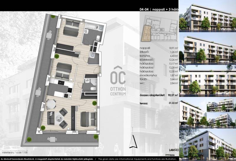 A lakás a 4. emeleten található, 91 m2, 4 szoba, 31m2-es terasz, nyugati-fekvésű, 404-es ajtószám!Budapest 4.kerületében, Újpest központtól 350 méterre épülő társasházban teljesen új építésű lakások várják új lakóit!A társasház 3 lakószintes és 2 garász szinttel rendelkezik, amiben összesen 33 lakás épül.A ház modern, fiatalos és leginkább környezetbarát lesz. A fűtést központi hőszivattyú látja el, ami szobánkként elhelyezett Fan-Coil kiállások biztosítják a kényelmet és a fenntartási költségek csökkentését.A lakások elhelyezkedése, fekvése és belső kialakítása lehetővé teszi családosok és egyedülállóknak is kényelmes, nyugodt élet körülményeket.Minden belső design, elosztás és felszereltség a mai kornak megfelel és minőségű burkolatokkal és szaniterekkel kerül átadásra, ami jelen szakaszában akár lehetőségük nyílik arra is, hogy megvásárolt otthonukat az utolsó részletig személyre szabhassák, továbbá széles kollekcióból választhatnak. Az alapáras burkolatokon felül, elérhetőek feláras termékek is, mely biztosítja, hogy személyiségük otthonukban is vissza tükröződhessen.Remek elhelyezkedésének köszönhetően, mind gyalog, autóval és tömegközlekedéssel is könnyen megközelíthető. Kiváló infrastruktúra jellemzi, legyen szó bevásárlásról, vendéglátó egységekről, szolgáltatói szektorról vagy park és játszóterekről. Bölcsőde, óvoda, iskola minden séta távra elérhetőek, akárcsak az orvosi rendelők és köz intézmények.A társasház összesen 3 lakószintből, egy földszinti parkoló és egy mélygarázs szintből áll. A lakásokhoz vásárolható mélygarázs beálló és tároló is, de a nagy érdeklődésre való tekintettel ezek korlátozott számban elérhetőek!Emellett két lakásnak saját kert rész is jár a társasházban, így lehetőséget biztosítunk a zöldövezetben való pihenésre és kikapcsolódásra.A gépkocsik elhelyezésére a teremgarázsban kínálunk lehetőséget a -1 és földszinten, ahol számos különálló és zárható tárolóhelyiséget is kialakítunk, változatos méretekben. Gondoltunk azokra is, akik környezet-tudatosak és elektromos töltési lehetőséggel rendelkező beállót szeretnének, ami külön megrendelhető.Összességében a ház egy modern és környezetbarát közösség részét képezi, ahol a városi nyüzsgést és a zöld környezet nyújtotta lehetőségeket egyaránt élvezheti.Abban bízunk, hogy az ingatlanpiacon szerzett sok éves tapasztalatunk, meggyőző referenciáink sokakban ébresztenek bizalmat és számos magas elvárásokkal rendelkező igényes vásárlónknak építhetünk modern, a jövőt megidéző, egyedi otthont, amely kimagaslóan magas megtérüléssel hálálja meg tulajdonosa befektetését.Amennyiben igazán egyedi, minőségi és modern házban keres új otthont, akkor keressen fel minket és hivatkozzon az \"Új élet\" projektre, hogy Ön is megkezdhesse itt életét!Projekt bemutatásaBudapest 4.kerületében, Újpest központtól 350 méterre épülő társasházban teljesen új építésű lakások várják új lakóit!A társasház 3 lakószintes és 2 garász szinttel rendelkezik, amiben összesen 33 lakás épül.A ház modern, fiatalos és leginkább környezetbarát lesz. A fűtést központi hőszivattyú látja el, ami szobánkként elhelyezett Fan-Coil kiállások biztosítják a kényelmet és a fenntartási költségek csökkentését.A lakások elhelyezkedése, fekvése és belső kialakítása lehetővé teszi családosok és egyedülállóknak is kényelmes, nyugodt élet körülményeket.Minden belső design, elosztás és felszereltség a mai kornak megfelel és minőségű burkolatokkal és szaniterekkel kerül átadásra, ami jelen szakaszában akár lehetőségük nyílik arra is, hogy megvásárolt otthonukat az utolsó részletig személyre szabhassák, továbbá széles kollekcióból választhatnak. Az alapáras burkolatokon felül, elérhetőek feláras termékek is, mely biztosítja, hogy személyiségük otthonukban is vissza tükröződhessen.Remek elhelyezkedésének köszönhetően, mind gyalog, autóval és tömegközlekedéssel is könnyen megközelíthető. Kiváló infrastruktúra jellemzi, legyen szó bevásárlásról, vendéglátó egységekről, szolgáltatói szektorról vagy park és játszóterekről. Bölcsőde, óvoda, iskola minden séta távra elérhetőek, akárcsak az orvosi rendelők és köz intézmények.A társasház összesen 4 lakószintből, egy földszinti parkoló és egy mélygarázs szintből áll. A lakásokhoz vásárolható mélygarázs beálló és tároló is, de a nagy érdeklődésre való tekintettel ezek korlátozott számban elérhetőek!Emellett két lakásnak saját kert rész is jár a társasházban, így lehetőséget biztosítunk a zöldövezetben való pihenésre és kikapcsolódásra.A gépkocsik elhelyezésére a teremgarázsban kínálunk lehetőséget a -1 és földszinten, ahol számos különálló és zárható tárolóhelyiséget is kialakítunk, változatos méretekben. Gondoltunk azokra is, akik környezet-tudatosak és elektromos töltési lehetőséggel rendelkező beállót szeretnének, ami külön megrendelhető.Összességében a ház egy modern és környezetbarát közösség részét képezi, ahol a városi nyüzsgést és a zöld környezet nyújtotta lehetőségeket egyaránt élvezheti.Abban bízunk, hogy az ingatlanpiacon szerzett sok éves tapasztalatunk, meggyőző referenciáink sokakban ébresztenek bizalmat és számos magas elvárásokkal rendelkező igényes vásárlónknak építhetünk modern, a jövőt megidéző, egyedi otthont, amely kimagaslóan magas megtérüléssel hálálja meg tulajdonosa befektetését.Amennyiben igazán egyedi, minőségi és modern házban keres új otthont, akkor keressen fel minket és hivatkozzon 