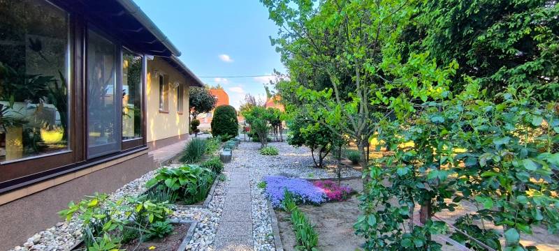 Balatonszentgyörgy község a déli Balaton-part és Somogy megye „kapuja”, a Balaton délnyugati csücskénél fekszik,.A település csendes, nyugodt utcájában , egyszintes kis mézeskalács házikó várja új tulajdonosát.A 2014-ben átadott , téglából épült ház, 120 nm alapterülettel rendelkezik.Elosztása - 2 hálószoba,tágas nappali, amerikai konyha-étkező , fürdőszoba, kamra, beépített télikert, garázs.Közművek bevezetve , az otthon melegét gáz( cirko) fűtés biztosítja központi termosztáttal , lapradiátoros hőleadással.Alternatív fűtésként hangulatos, épített kandalló áll a lakók rendelkezésére.A műanyag nyílászárók, szúnyoghálóval felszereltek. .A gondozott, parkosított , dísznövényekkel, számtalan virággal, termő gyümölcsfával betelepített kert 1150 nm. A kertben nyári konyha kapott helyet , nem csak a sütés-főzés praktikus helyszíne nyaranta, de hangulatos látványeleme is a kertnek, ahol szívesen gyűlik össze a család és a vendégek.A növények öntözése, fúrt kútból megoldott , hangulatos kerti faház a szerszámok tárolására és még sorolhatnám a ház előnyeit.A jelenlegi tulajdonosok nagy gonddal, törődéssel szépítették a házat és a környezetét egyaránt.A ház külföldi tulajdonostól kerül értékesítésre, a birtokba adás május végén lehetségesKitűnő lehetőség állandó lakhatásra,nyaralónak akár befektetésnek a Balaton közelsége miatt.Falusi CSOK igénybe vehető a településen.Balatonszentgyörgy nem tartozik közvetlenül a Balaton-parti községek közé, de kedvező földrajzi helyzete lehetővé teszi, hogy mindjobban bekapcsolódjon az idegenforgalomba.Bár nem tartozik a „strandos” balatoni települések közé, a 800 méteres partszakasz amely a Zala torkolatától keletre húzódik, igazi vadregényes horgászparadicsom és a balatoni halak leggazdagabb, legsokszínűbb bölcsője..A Balaton-parti nyüzsgésből elvágyódókat a falu minden kényelme és csendes nyugalma várja. Az elmúlt évtizedek a tanúi, hogy akár magyarként, akár bármely idegen nemzet fiaként sok letelepedő család talált itt magának nemcsak házat, hanem hazát is.Ha felkeltette az érdeklődését,hívjon bizalommal !