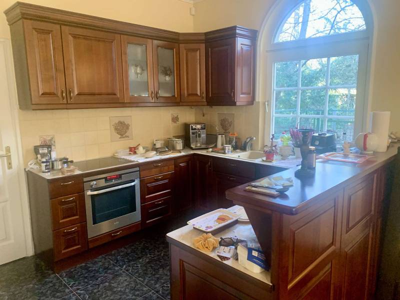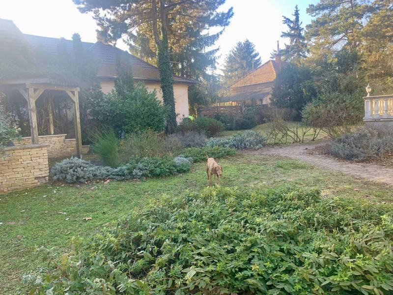 Piliscsabán, Klotildliget legszebb utcájában két generációs családi ház eladó. Telek 1206 m2, a ház nettó 161 m2, a terasz 18,5m2 Földszinten (96 m2) a nagy tágas előszobából jobbra egy 12 m2-es fürdőszoba van ebből nyílik egy gardrób és azon keresztül haladva egy nagy 20 m2-es hálószoba érünk. Az előszobából nyitunk be egy óriási 50 m2-es nappaliba, ahonnan szintén meg lehet közelíteni a földszinti hálószobát. Ebben a nagy térben van balra a konyha, ami mögött van egy tágas kamra. A két hűtőszekrény is ott helyezkedik most el. A konyhabútor asztalos által készült tömör fából, a mostani bútorozathoz készítettük. Az emeleten (bruttó 87 m 2/ nettó 65 m 2) van a második fürdőszoba, 3 hálószoba, amiből az egyiket nappalinak is lehet használni és ezen felül van egy szekrényekkel teljesen beépített háztartási helyiség, ami korábban eredetileg a második konyha volt a két generációs családi ház kialakítása végett.Gyönyörűen megtervezett kert van a ház körül.Külön, a kert végében álló 83 M2 -es épületben 7,5x4 m-es medence van, ami a wellnessezés mellett intimmé teszi a kertet a hátsó szomszéd felöl. A ház mellett két kocsibeálló van. Kérem keressen bizalommal.Wentzel Éva+36305004921