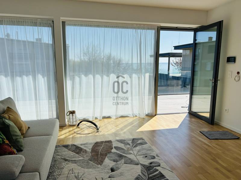 Álomlakás közvetlen vízparton Balaton-i panorámával!A Villa parkot az exkluzív megvalósítás mellett, a prémium műszaki tartalom jellemzi.Egy kis létszámú nyaralóközpontban helyezkedik el, ahol intim környezetben az élvezetes időtöltés és a pihenés egyidejűleg jelen van. A 2024-ben társasházzá alakult beruházásnál fontosnak tartotta az építtető a privát szféra megtartását.- 8000 nm ős fás telken, három épület,- 40 méter saját vízpart,- saját stég , a lakás jellemzői:- kitűnő elhelyezkedésű penthouse lakás,- nettó 62 nm + 4 nm tároló Díjmentes, bankfüggetlen hiteltanácsadással támogatjuk vevő ügyfeleinket a számukra legelőnyösebb finanszírozási döntések meghozatalában. Opcionálisan igénybe vehető kiegészítő szolgáltatásainkkal – mint ügyvédi közreműködés, energetikai tanúsítvány vagy villamos biztonsági felülvizsgálat – teljes körű szakmai támogatást nyújtunk az adásvétel folyamatának minden egyes lépésénél.- 115 nm terasz - elvehetetlen Balaton-i panoráma- nappali + amerikai konyha + étkező, 2 db hálószoba, 2db fürdőszoba , 2db tároló ( ezen a szinten )- a Villaparkhoz tartozó privát stég a kellemes strandolást biztosítja.Extrák:- 8000 nm ős fás telek- közvetlen Balaton part ( 40 m )- stég- 115 nm terasz Balaton-i panoráma,- beépített konyhabútor,- főzőlap,- nappaliban ülőgarnitúra,- ágy, lámpatestek,- luxus minőségű bútorokkal berendezve kerül értékesítésre.- Ariston vízmelegítő,- riasztó,- mennyezeti hűtés-fűtés,- padlófűtés ( konyha, fürdőszoba)- közös költség 25.000 Ft- garázs 5M Ft melyet a vételár nem tartalmaz.Az egész beruházásra kimagasló minőség, családias, intim hangulat jellemző.Budapesttől 50 perc!Azonnal költözhető, kivételes lehetőség!