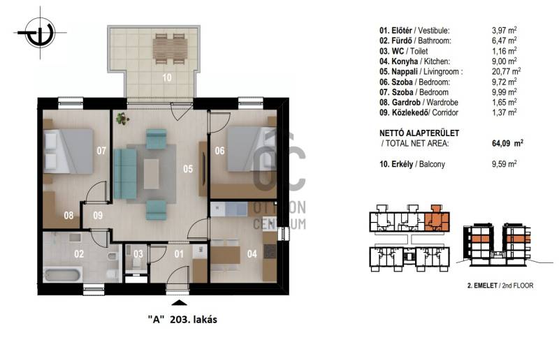 \"A\" II. emelet 203. lakás: 78.725.714.- + ÁFA- nappali- 2 hálószobás- konyha-étkező- fürdőszoba káddal és épített tusolóval- külön WC - kézmosóval- erkély (10 nm).Projekt bemutatásaKIVÉTELES LEHETŐSÉG DEBRECENBEN, ÁPRILISBAN KÖLTÖZHETŐ!* Vásároljon úgy lakást, hogy visszaigényli a vételár 5%-át és így, akár be is bútorozhatja otthonát! OTTHON VAGY BEFEKTETÉS A BELVÁROSTÓL 5 PERCRE!* Modern, fiatalos, gépesített konyhabútorral beépített lakások már költözhető állapotban!Debrecen rohamosan fejlődő részén, a Belváros közelében, 7 épületből álló lakópark épül, melynek első üteme befejeződött.A 28 lakásos, liftes, modern társasházban kínálunk új építésű, erkélyes lakásokat.A nappali +1 háló (46 nm) 59,9 MFt, nappali + 2 háló (69 nm) 82,7 MFt és nappali + 3 háló (85 nm) 94 MFt-ért választhat otthont saját részre vagy befektetési céllal.Garázs (9,5MFt), felszíni parkoló (4,9MFt), tároló (1,68MFt) vásárolható hozzá, mely nem kötelező!Egyedi megjelenés, elegáns kialakítás és építészeti megoldások, valamint korszerű műszaki tartalom jellemzi az épületet, mely megfelel a mai kor igényeinek és energiafelhasználási elvárásainak, így a lakások energiatakarékosak, gazdaságosan üzemeltethetőek lesznek.A tervezés során elsődleges szempont volt a családoknak ideális elosztású, mindenki számára élhető térrel rendelkező otthonok kialakítása.Egyedülálló megoldás hosszútávon otthonteremtés céljából, de akár befektetési lehetőségként is, mivel értékálló, biztonságos.Infrastruktúrája ideális, gyalog, tömegközlekedéssel, kerékpárral kerékpárúton, vagy gépjárművel a Belvárostól pár perces távolságra.A közelben minden adott, úgy a bevásárlási és szórakozási lehetőségek, mint az oktatási, egészségügyi intézmények.Válassza a megbízhatóságot és a minőséget, jöjjön el személyesen és válasszon a kiváló adottságú lakások közül otthont!Átadás: 2025. április.Ne maradjon le erről a páratlan lehetőségről!
