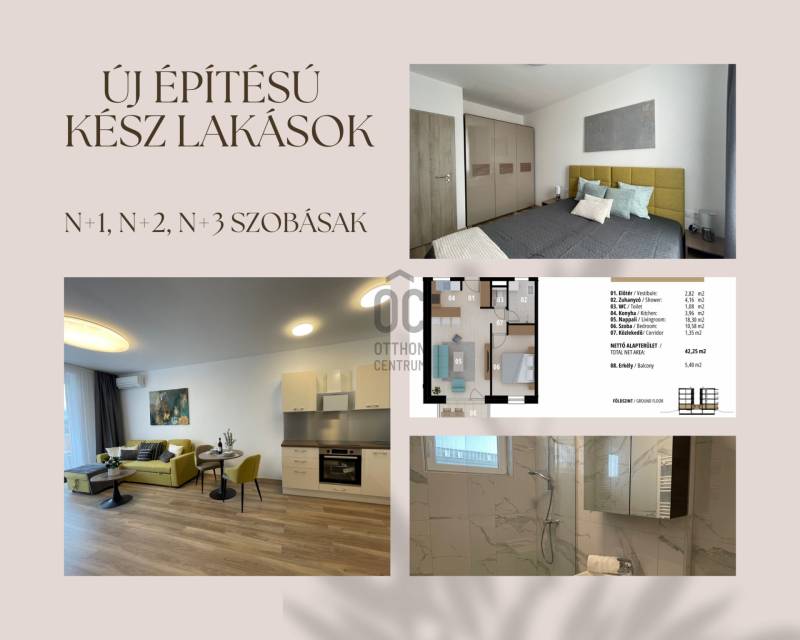 \"A\" épület fszt.3. lakás: 78.725.714.- + ÁFA- nappali- 2 hálószobás- konyha-étkező- fürdőszoba káddal és épített tusolóval- külön WC - kézmosóval- erkély (10 nm).Projekt bemutatásaKIVÉTELES LEHETŐSÉG DEBRECENBEN, ÁPRILISBAN KÖLTÖZHETŐ!* Vásároljon úgy lakást, hogy visszaigényli a vételár 5%-át és így, akár be is bútorozhatja otthonát! OTTHON VAGY BEFEKTETÉS A BELVÁROSTÓL 5 PERCRE!* Modern, fiatalos, gépesített konyhabútorral beépített lakások már költözhető állapotban!Debrecen rohamosan fejlődő részén, a Belváros közelében, 7 épületből álló lakópark épül, melynek első üteme befejeződött.A 28 lakásos, liftes, modern társasházban kínálunk új építésű, erkélyes lakásokat.A nappali +1 háló (46 nm) 59,9 MFt, nappali + 2 háló (69 nm) 82,7 MFt és nappali + 3 háló (85 nm) 94 MFt-ért választhat otthont saját részre vagy befektetési céllal.Garázs (9,5MFt), felszíni parkoló (4,9MFt), tároló (1,68MFt) vásárolható hozzá, mely nem kötelező!Egyedi megjelenés, elegáns kialakítás és építészeti megoldások, valamint korszerű műszaki tartalom jellemzi az épületet, mely megfelel a mai kor igényeinek és energiafelhasználási elvárásainak, így a lakások energiatakarékosak, gazdaságosan üzemeltethetőek lesznek.A tervezés során elsődleges szempont volt a családoknak ideális elosztású, mindenki számára élhető térrel rendelkező otthonok kialakítása.Egyedülálló megoldás hosszútávon otthonteremtés céljából, de akár befektetési lehetőségként is, mivel értékálló, biztonságos.Infrastruktúrája ideális, gyalog, tömegközlekedéssel, kerékpárral kerékpárúton, vagy gépjárművel a Belvárostól pár perces távolságra.A közelben minden adott, úgy a bevásárlási és szórakozási lehetőségek, mint az oktatási, egészségügyi intézmények.Válassza a megbízhatóságot és a minőséget, jöjjön el személyesen és válasszon a kiváló adottságú lakások közül otthont!Átadás: 2025. április.Ne maradjon le erről a páratlan lehetőségről!