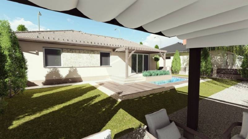 Győr közelében Győrújfalun, újonnan épülő, igényes kialakítású, tégla építésű családi ház leköthető.A nappali + négy szobával(vagy akár több szobával) rendelkező ingatlan alapterülete nettó 110 m2, mely igény szerint módosítható.A praktikusan tervezett házban a szobákon kívül tágas és napfényes amerikai konyhás nappali, gardrób, kamra, szélfogó, közlekedő, fürdőszoba+wc, háztartási helyiség és egy külön mellékhelyiség is kialakításra kerül.Az élhető méretű telek összesen 800 m2-es, mely 30%-ban beépíthető.A feltüntetett vételár az emelt szintű fűtés kész árat és a telek árát tartalmazza, de igény esetén kulcsra kész befejezésre is van lehetőség!Továbbá az ár tartalmazza a komplett tervezői díjat(gépészet, metszetek, statika, energetika, engedélyek), plusz egy inverteres(hűtő-fűtő) klímát!A jelenlegi árajánlatban az otthon melegéről gáz-cirkó kazán gondoskodik, padlófűtéses hőleadással, de a fűtésrendszer is az építtető igényei alapján módosítható!A részletes műszaki leírást és az Építőipari cég weboldalát kérésére e-mailben elküldöm.Más az elképzelése? Válassza ki Ön a saját elképzeléseinek megfelelő alaprajzot!Amennyiben teljesen egyedi tervezést szeretne, az is lehetséges!A képek látványtervek.Jól átgondolt tervezés, megfelelő szakmai tudás és háttér garantálja a MINŐSÉGI OTTHON megvalósítását!További kérdés esetén állok rendelkezésére!Amennyiben megbízható építtetőt szeretne, referenciamunkákkal, minőségi anyagokkal és kivitelezéssel, hívjon bizalommal akár hétvégén is!Teljes körű ügyintézéssel:- Ügyvéd- Biztosítás- Hiteltanácsadás- Generálkivitelezés- Ingatlanértékesítés- Teljeskörű ingatlanfelújítás- CSOK, babaváró, áfa visszaigénylés - állunk rendelkezésére!