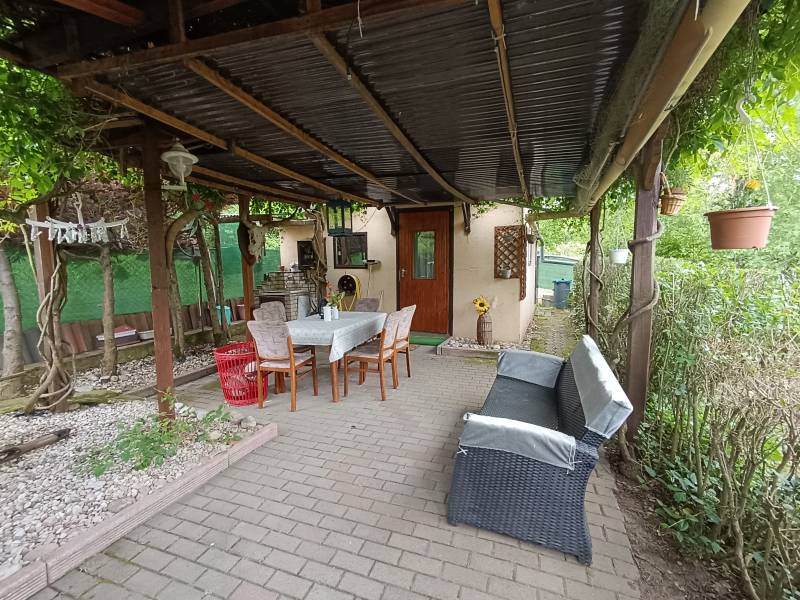 FELSŐÖRSÖN SZÉP TERMÉSZETI KÖRNYEZETBEN ÁLLÓ, HANGULATOS, KÉTEGYSÉGES NYARALÓ ELADÓFelsőörs Öreghegyen vált eladóvá ez a 90-es évek végén épült, külterületi nyaraló, melynek csendes, természetközeli fekvése azonnal elvarázsolja az ideérkezőt.Az Almádi úttól 170 m jó minőségű, télen-nyáron jól járható földúton közelíthető meg, de tömegközlekedéssel is könnyen elérhető, a buszmegálló mindössze 240 m.A terület 2210 m2-es saroktelek, két utca felől is bejárattal rendelkezik. Ideális, majdnem szabályos négyzet alakú (utcafronti szélességei: kb. 44,7 m).A gazdaságos öntözést ásott kút biztosítja. Termő alma-, cseresznye-, meggy-, sárgabarack-, szilva- és körtefákkal telepített. A telek mérete igény szerint további gazdálkodási lehetőséget nyújt. Jelenlegi állapotában rendezett, parkosított. Egy 4 X 2,5 m pince biztosítja a termény- vagy bortárolást.A személyautók elhelyezésére két garázs is rendelkezésre áll. A kertben több helyen is elhelyeztek fedett kiülő- és sütögető helyet, szerszámtárolót, valamit egy 80 cm mély, 3 X 4 m-es fedett kismedence is a kikapcsolódást szolgálja.A 105 m2-es ház a telek hátsó oldalhatárára épült, így a teraszáról a teljes kert és a környező erdős vidék jól látható.Két külön bejáratú lakrész került kialakításra, amelynek egyik szárnya hagyományos téglaépítésű, a másik oldal könnyűszerkezetes. A két lakrész természetesen egybe is nyitható. A tető zsindelyfedésű, a homlokzat 8 cm-es hőszigeteléssel ellátott. Nyílászárói fa gyártásúak, zsalugáterrel szereltek.Helyiségei:Bal oldali, könnyűszerkezetes lakrész: nappali, amely felett galériázott háló lett kialakítva, zuhanyzós fürdőszoba + WC, konyha, hálószoba, tágas előtér. Fűtése: klíma és lemezkandallóJobb oldali, téglaépítésű lakrész: nappali, galériázott háló, zuhanyzós fürdőszoba + WC, tágas előtér, hálószoba. Fűtése: klíma és cserépkályhaEzen az oldalon egy kb. 22 m2-es, könnyűszerkezetes kisház is áll, amely fedett terasszal össze lett kötve a főépülettel. Jelenleg nyári konyha, de választható funkciójú, pl. egy szaunás, zuhanyzós wellnes sarok is kialakítható benne.A terület a rendezési tervben Mk-1 övezetbe tartozik, így további bővítés már nem lehetséges. (3 % beépíthetőséget és 4,0 m max. építménymagasságot engedélyez)Közművek: víz, villany bevezetésre került, csatorna nincsElhelyezkedése: buszmegálló 240 m, Almádi, Káptalanfüredi strand 3,4 km, Alsóörs strand 5 km, élelmiszerbolt 1,7 km távolságra érhető el. Almádi közelsége biztosítja a komolyabb infrastruktúrát, kulturális lehetőségeket.Tulajdoni lapon egy helyrajzi számon, azon belül két minőségben nyilvántartott ingatlan:a) szőlő 558 m2b) kert és gazdasági épület (2 egységes, iker) 1652 m2Adásvétele kifüggesztés köteles.Felsőörs a Balaton-felvidék azon települései közé tartozik, ahonnan – legalábbis a település egy része felől – látni lehet ugyan a Balatont, de saját tóparttal a helység nem rendelkezik. Páratlan természeti adottságú környezetben, a tóparttól mindössze 4 kilométerre fekszik. A csend és nyugalom álomszerű vidéke. A felsőörsi táj karakterét a mai napig is a szőlős- és gyümölcsöskertek, erdővel borított lankák határozzák meg, és a jellegzetes Balaton-felvidéki stílusban épült épületek.Építész- és ingatlanközvetítő irodánk minden hiteles szakmai segítséget meg tud adni, mellyel segíteni tudjuk döntését. Kérje az ingatlan részletes tájékoztató anyagát! Kövesse Balatoniingatlanguru facebook és balatoni_ingatlanguru instagram oldalunkat. Hívjon bizalommal! Balatoni ingatlanguru – több mint közvetítő