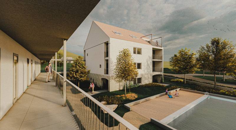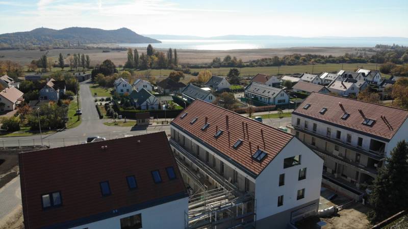 ASZÓFŐN ÚJÉPÍTÉSŰ LAKÁSOK ELADÓK Aszófőn a 71-es út mentén, a település központja közelében található 3488 m2-es belterületi telken három társasház épül. A környéken már több sikeres, minőségi referenciával rendelkező, megbízható beruházó projektje. A lakások tartós értékállóságuk révén befektetési célból is kiválóak.Az építkezés már elkezdődött. A lakások átadásának tervezett dátuma 2025. III - IV. negyedéve. A fizetési ütemezés a készültségi foknak megfelelően történik. Aszófő az északi part értékes, hamisítatlan Balaton felvidéki hangulatú települése, természeti-, táji értékekben igen gazdag. Ez adja a település báját, és jó célponttá teszi a kevésbé zsúfolt és kevésbé hangos üdülőhelyet vagy lakóhelyet keresőknek. Területének körülbelül fele védett, melyek a Balaton-felvidéki Nemzeti Parkhoz tartoznak. Ugyanakkor Balatonfüred (7 km) és Tihany közelsége biztosítja a pillanatok alatt elérhető infrastruktúrát, kulturális és sportolási lehetőségeketA földszint + 2 emelet + tetőtér kialakítású épületekben összesen 32 db különböző méretű lakás lesz elhelyezve.Az „A” épületben 7 db lakás, a „B” épületben 14 db lakás, a „C” épületben pedig 11 db lakás. A pinceszinten 18 db teremgarázs és 35 db tároló kap helyet, a kertben pedig 28 db kültéri parkolóhely.A lakóépületek külsőfolyosós kialakításúak. A kedvező tájolású, panorámás kialakítású lakások mindegyikéhez egy-egy saját terasz/erkély tartozik. A telken elhelyezésre kerül a pihenést szolgáló, parkosított zöldfelületen egy szabadtéri medence (1,35 m vízmélységgel), elhúzható medence fedéssel. A hirdetésben szereplő lakás (B03) földszinti, 2 szobás, 44 m2 + 15,9 m2 erkély alapterületű, nyugati tájolású. Kérésére részletes lakáslistát, műszaki tartalmat küldünk. Műszaki tartalom:- A nyílászárók műanyagból, 5 légkamrás profilú, 3 rétegű hőszigetelő üvegezéssel készülnek.- A homlokzaton hőszigetelő vakolatrendszer, 12-15 cm grafitos hőszigetelés kerül elhelyezésre- A lakásokban egységesen laminált padló kerül kialakításra (kivéve WC, fürdőszoba ésa háztartási helység)- Az épületekben összesen 2 db 8 személyes személyfelvonó kerül beépítésre.- A lakások melegvíz ellátása a lakásonként elhelyezésre kerülő elektromosforróvíz tárolóból (bojler) megoldott- Fűtés: épületenként nagy teljesítményű levegő-víz hőszivattyú biztosítja, padlófűtés és Fan-Coilos fűtés-hűtéssel, egyedi hőmennyiségmérőkkel- Távirányítós gépjárműkapu, a kertben automata öntözőrendszer - A közös területeken kamerás térfigyelőrendszer készül.- Gondnoki szolgálatA lakásokhoz különböző méretű, az épület pinceszintjén elhelyezett tárolók vásárolhatók (2,5 - 4 mFt), a mélygarázshelyek mérettől függően 7,5 – 10 mFt áron érhetőek el, a felszíni parkolóhelyek pedig 3,5 mFt-ba kerülnek. A projekt elhelyezkedése: örvényesi szabadstrand 2,3 km, Tihany sajkodi strand 3,5 km, aszófői vasútállomás 200 m, buszmegálló a lakópark bejáratában. Építész- és ingatlanközvetítő irodánk minden hiteles szakmai segítséget meg tud adni, mellyel segíteni tudjuk döntését. Kérje az ingatlan részletes tájékoztató anyagát! Kövesse Balatoniingatlanguru facebook és balatoni_ingatlanguru instagram oldalunkat. Hívjon bizalommal! Balatoni ingatlanguru – több mint közvetítő