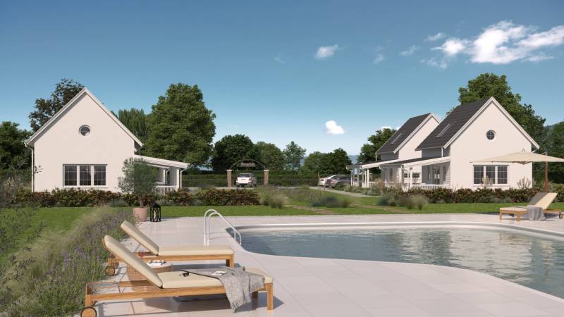 BALATONSZEPEZDEN KÖNNYŰSZERKEZETES, KÉT LAKÓEGYSÉGES IKERHÁZ ELADÓ - SAJÁT NYARALÓKÉNT VAGY BEFEKTETÉSKÉNT IS KIVÁLÓ VÁLASZTÁSSzepezdfürdőn kínáljuk eladásra ezt a 800 m2-es (20 m X 40 m) szép fekvésű, belterületi, üdülőövezeti telken épülő könnyűszerkezetes nyaraló projektet, melynek emeleti ablakából balatoni panoráma látszik. A Green Sea Estate Boutique Resort elnevezésű projekt keretében a nyaraló bérbeadására is lehetőség nyílik. A teljes 4362 m2-es telken lévő üdülőkomplexum három, megjelenésében ugyanolyan, magántulajdonban lévő ingatlanból áll. Az egyik az üdülő üzemeltetőjének tulajdona, mint ahogy az elhelyezésre kerülő medence, welness épület és BBQ ház is, amelyre a vevő használati jogot kap.Az üdülőépület két önálló, külön bejáratú, belső kétszintes, egyenként 72 m2 lakótér + 18 m2 fedett terasz kialakítású egységből áll, amelyek rendelkeznek egységenként egy-egy konyha-étkezővel, egy földszinti nappalihelyiséggel, egy hálószobával az emeleten, és egy fürdőszobával. Műszaki tartalom: - A nyílászárók műanyag gyártásúak, 3 rétegű hőszigetelt üvegezéssel- A könnyűszerkezetes homlokzat 10 cm EPS hőszigetelést és 0,4 cm Dryvit vakolatot kap - A tető antracit színű és cserépfedésű - A szennyvíz gyűjtése zárt szennyvíz tárolóval megoldott - A melegvizet lakóegységenként egy-egy 120 literes bojler állítja elő a padlástérben- A nappaliban és a hálóban egy 3,5 kW teljesítményű hűtő-fűtő klíma lesz elhelyezve - A kulcsrakész kivitelezés a szerződés alírásától számított maximum 12 hónapig tart - A nappali panorámaablaka elektromos redőnnyel szerelt - A kulcsrakész állapot NEM tartalmazza a konyhabútort és a háztartási gépeket - Az ingatlanhoz tartozik egy elektromos kapu és a telken belül két térkövezett autóbeálló- A telek parkosítását a vételár nem tartalmazza Referenciaházat tudunk mutatni. Elhelyezkedés: Szepezdfürdői strand 1,3 km, vasútállomás és buszmegálló 800 m, a Balaton légvonalban 600 m, Révfülöp központja 2 km, Szepezd központja 1 km távolságra érhető el.Balatonszepezd a part menti dombokra épült, erdők és hegyek veszik körül. A Balaton északi partján helyezkedik el, Balatonfüredtől 24 km-re, Zánka és Révfülöp között. A település báját a természetközeliség és a nyugalom adja, és jó célponttá teszi a kevésbé hangos üdülőhelyet keresőknek. Ugyanakkor az éttermek, üzletek, szórakozóhelyek, a strand is könnyen, gyorsan elérhető. Balatonszepezd három részre tagolódik: középen van a falu, ahol a helyiek élnek, nyugatra található Szepezdfürdő, keletre a Viriusztelepnek nevezett nyaralótelep fekszik. Minden településrészhez önálló strand tartozik. Építész- és ingatlanközvetítő irodánk minden hiteles szakmai segítséget meg tud adni, mellyel segíteni tudjuk döntését. Kérje az ingatlan részletes tájékoztató anyagát! Kövesse Balatoniingatlanguru facebook és balatoni_ingatlanguru instagram oldalunkat. Hívjon bizalommal! Balatoni ingatlanguru – több mint közvetítő