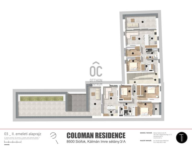 Fedezze fel ezt a lenyűgöző, modern belvárosi lakást, amely ideális otthont vagy befektetést kínál. Az ingatlan alapterülete 71 nm, amely két világos szobával és egy nappalival rendelkezik, így tökéletesen alkalmas lehet akár egy fiatal pár, akár egy kis család számára. A lakás kiváló állapotban van, hiszen minden részletét gondosan megtervezték, hogy a modern életstílus igényeit maximálisan kielégítse. A terasz, amely több, mint 23 négyzetméter alapterületű, a lakás igazi gyöngyszeme, a nappali ajtaja kb. 3 métert nyílik a teraszra, ezzel szinte egybenyitható a két helyiség. Élvezheti a reggeli kávéját vagy a barátokkal eltöltött esték hangulatát. A fürdőszoba elegáns és funkcionális, Ravak, Geberit és Radaway szerelvényekkel. A lakásba egy második WC is beépítésre került. Az ingatlan Daikin hőszivattyús fűtése és hűtése biztosítja az optimális komfortérzetet, így egész évben kellemes hőmérséklet várja Önt.A feltüntetett ár az 5%-os ÁFÁ-t nem tartalmazza.A környék csendes és biztonságos, ugyanakkor felkapott helynek számít, ahol a fiatalok és a családok egyaránt otthonra lelnek. A belváros közelsége lehetővé teszi, hogy a város nyüzsgését könnyen elérje, miközben a lakás nyújtotta nyugalom és csend tökéletes ellentétben áll a városi élettel. A Főtér lépésekre található, számos bolt, étterem butik, kávézó és szolgáltatás található a közelben, így mindennapi szükségleteit könnyedén kielégítheti. A közlekedési gyors és egyszerű. A vasútállomás és a buszpályaudvar sétatávolságra, az autópálya felhajtó 2 km. A főváros kevesebb, mint másfél óra alatt elérhető akár autót, akár vonatot választ. A környék biztonságos és csendes, ideális választás családok számára, akik a városi élet előnyeit szeretnék élvezni, miközben élvezik a nyugalmat. Ez az ingatlan nemcsak egy lakás, hanem egy életstílus, amely a modern kényelmet és a városi élet dinamikáját ötvözi. És ami a legfontosabb, hogy a BALATON-PART mindössze 570 m!Irodánk bankfüggetlen hiteltanácsadásban áll ügyfeleink rendelkezésére. CSOK PLUSZ kamatozása max. 3%-os fix kamat, max. futamidő 25 év, max. 50 MFt. A Zöld hitel kamata kb. 5,89%.Amennyiben Ön is szeretne részese lenni ennek az egyedülálló lehetőségnek, ne habozzon kapcsolatba lépni velem. Bizalommal keressen kérdéseivel, szívesen segítek Önnek a hét minden napján az ingatlan megtekintésében és a további részletekben. Az álomotthon vár Önre!.Projekt bemutatásaSiófok központi helyén épült beruházásban 8 db különböző méretű exkluzív lakás, és 3 db méretében és kialakításában más-más funkciót betöltő kiváló adottságú üzlethelyiség várja új tulajdonosát.A beruházók nagy hangsúlyt fektettek a minőségi anyaghasználatra mind a ház külső megjelenésében, mind az egyes ingatlanok belső megjelenésében. Az egész házat a minőség, a harmónia jellemzi. A épület 3 szintes (fsz. + 2 em.), melyben mindenki megtalálja a maga álomotthonát, nyaralóját, vagy vállalkozását. Minden ingatlan albetétesítésre került (külön helyrajzi számon vannak). Az épület utcafrontján kapott helyet egy exkluzív kialakítású impozáns kávéház, vagy egyéb üzleti lehetőséget magában rejtő hatalmas üvegfelületekkel rendelkező 108 nm-es üzlethelyiség. Ugyancsak a földszinten található egy több, mint 40 nm-es iroda és egy 54 nm-es üzlethelyiség, valamint egy 61 nm-es lakás. Az első emeleten négy darab különböző méretű és kialakítású lakás, a második emeleten két penthouse lakás.A feltüntetett árak az ÁFÁ-t nem tartalmazzák. Lakások esetén 5%-os, üzlethelyiségek esetén 27%-os ÁFÁ-val kell számolni.A projekt műszaki tartalmának jellemzői:- tégla és Wienerberger Pototherm 30 X- therm külső falazatok- monolit vasbeton födém- bádogozáshoz PREFA PREFALZ korcolt fémlemez használata BAUDEFR alászigeteléssel- 18 cm EPS hőszigetelő rendszer- KNAUF W 115 lakáselválasztó falak - a lakásokban direktfüggesztett nagytáblás álmennyezetek LED peremvilágítással- egyes lakásokban nagytáblás száraz technológiás hűtő-fűtő álmennyezet- a lakások általános terei TARKETT Starfoor melegburkolatokkal vannak burkolva belsőépítész tervei alapján- vizes helyiségek első osztályú gres burkolattal vannak ellátva- teraszok nyílt fugás 2 cm vastag 60x60 cm-es kőporcelánnal készültek- a nyílászárók hang és hőszigetelt Janko Cross Flat korszerű lucfenyő- alumínium nyílászáró rendszert kaptak 3 rétegű üvegezéssel- minden lakásban motoros, távirányítós SCHLÖTTERER raffstore árnyékolók kerültek beépítésre- bejárati ajtók biztonsági és hanggátló 3 pontos PZ zárral, beépített automata küszöbbel 2 részes acél tokkal ellátottak- levegő - víz hőszivattyús hűtés - fűtés rendszer lakásonként - hűtő fűtő DAIKIN oldalfali fan-coil minden lakásban- önálló víz- és villanyórák- minden lakásban HIKVIISION kaputelefon mely lehetővé teszi a kapu vezérlését- beépített szekrények a vételárban- a Penthouses lakásban teljesen gépesített konyha és bútorozott hálószoba a vételárban- különböző hangulatvilágítások a belső parkbanIrodánk bankfüggetlen hiteltanácsadásban áll ügyfeleink rendelkezésére.Ha igényes lakást, vagy üzlethelyiséget szeretne megfizethető áron, itt megtalálja! Jöjjön el és válasszuk ki együtt az Ön igényeinek legmegfelelőbb ingatlant a hét bármely napján!