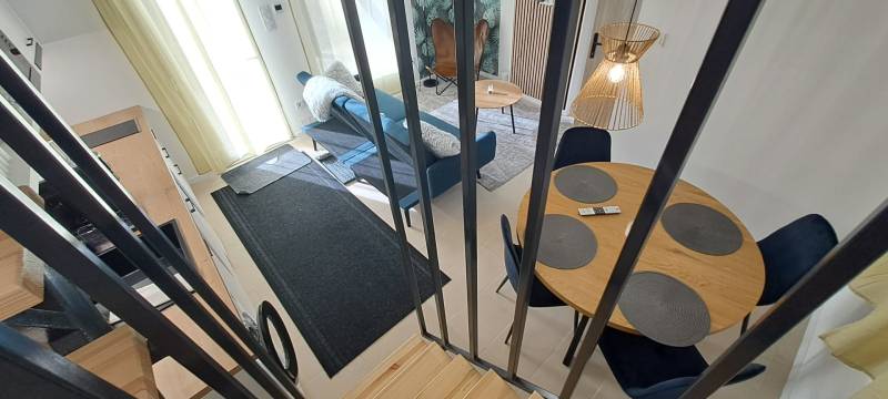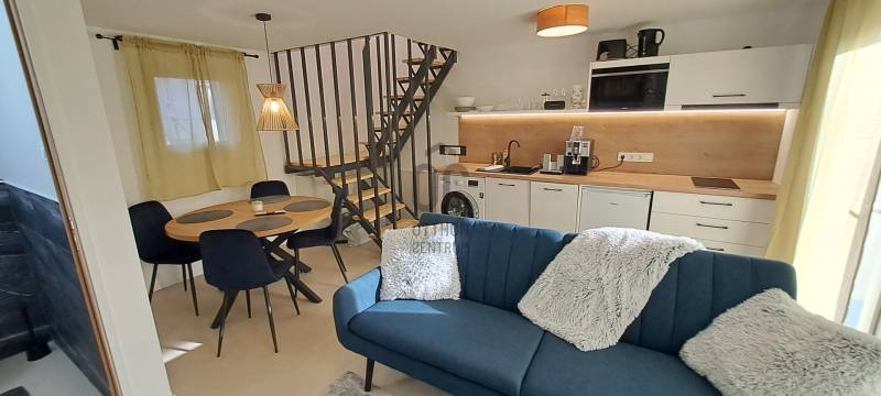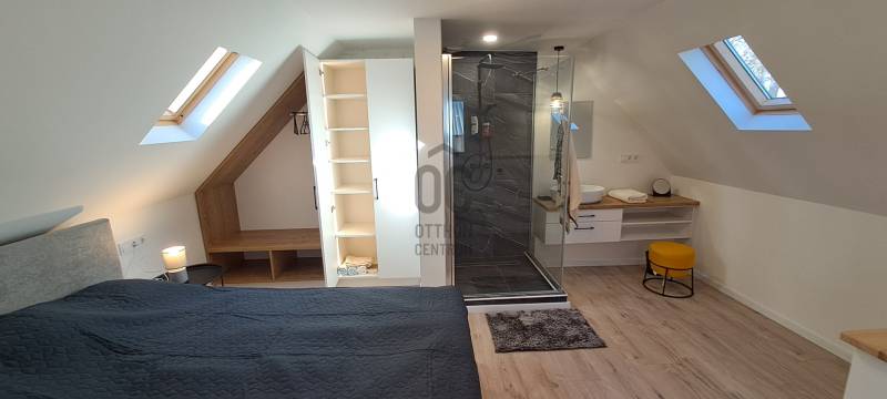 Tisztelt Érdeklődő!Ha Ön is a nyugalmat és a természet közelségét keresi, miközben befektetésben is gondolkodik, akkor ez a Makó, Maros-parti üdülősorán elhelyezkedő, felújított nyaraló apartman tökéletes választás!A 384 m²-es osztatlan közös tulajdonú telken található tetőtér beépítéses tégla iker apartman 2-es lakása 2 szobával, 40 négyzetméteres alapterülettel rendelkezik, így akár a család, baráti társaság vagy vendégek fogadására is ideális. A nappali – konyha a földszinten, míg a háló és a fürdő a tetőtérben került kialakításra. A tágas belső terek modern és igényes kialakításúak: a konyha és nappali járólappal burkolt, míg a hálószoba vízálló laminált padlót kapott A komfortot tovább növeli, hogy a hálószobában saját mosdó és tuskabin található. A WC a földszinten kapott helyet.A ház kívül-belül felújított, korszerű műszaki megoldásokkal felszerelt. Az elektromos padlófűtés és az okos Ariston bojler gondoskodik a kellemes hőmérsékletről, illetve a melegvízről. A padlófűtés wifin keresztül is szabályozható. A hőszigetelt műanyag nyílászárók, a tetőtér kőzetgyapot szigetelése és az épület külső hőszigetelése biztosítják az energiatakarékosságot és a hosszú távú fenntarthatóságot. A közművek: elektromos áram 3x20A, jelenleg közös a vízóra a 1-es lakással, de külön körön a két lakás, előkészítve almérők felszerelésére. Szennyvíz gyűjtése 1000 literes tartályban Klíma előkészítés, tv antenna előkészítés, illetve már telepített kamera az utcafronton, mely internetről vezérelhető.A Maros-part mindössze 200 méterre található, a városi strand, a kalandpart és a lombkoronasétány szinte karnyújtásnyira van. A városközpont pedig autóval 7 perc, kerékpárral 10 perc, gyalogosan 35- 40 perces sétával elérhető.Az apartman teljes berendezéssel kerül átadásra, így azonnal birtokba vehető. A rendezett kertben a pihenést szolgálja majd egy leendő közös szauna, melynek az elektromos előkészítése megtörtént. Parkolás közvetlenül az apartman előtt biztosított.Akár saját nyaralóként, akár befektetési célra keres ingatlant, ez a lehetőség ritkaság a piacon. Ne maradjon le róla! A két apartman egyben is megvásárolható, 54,9 MFt-os áron.Érdeklődjön most és tekintse meg személyesen, akár mindkét lakást!Makóról bővebben itt: http://mako.hu/makoi-seta/Legyen tisztában pénzügyeivel, mielőtt elkötelezi magát! Ebben díjmentesen az Ön rendelkezésére áll bankfüggetlen hitelközvetítőnk.Vevőinket profi és kedvező díjazású ügyvédi háttérrel is segítjük a szerződéskötés során.Az ingatlanról rövid bemutató videó is készült. Ha ezt a hirdetést az Otthon Centrum weboldalán nézi, akkor a videó azonnal indítható a képgaléria elején. Ha egy másik weboldalon találta ezt a hirdetést, kérem, nyissa meg az Otthon Centrum weboldalát, kattintson a „Regisztrációs szám keresése” menü pontra, és írja be ezt a regisztrációs számot a keresőbe: NY012373 Itt meg tudja tekinteni az ingatlanról készült videót és még több képet, vagy írjon nekem, és szívesen elküldöm a felvételt, képeket.#eladoingatlan #nyaralo #befektetes #otthoncentrum #modernotthon #pihenes #termeszetkozelben #okosotthon #ingatlanpiac #ocmako #kikapcsolodas #dreamhome #otthoncentrummako #veledmindenlepesnel #almokatepitunk #bluecottage #marospartiapartman #oc #biztositas #hitel