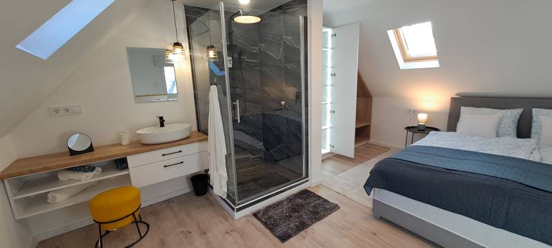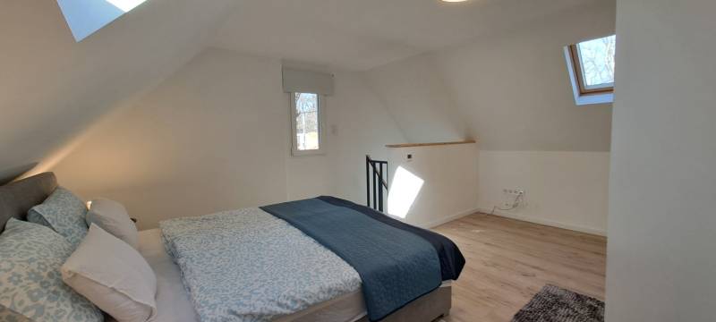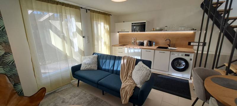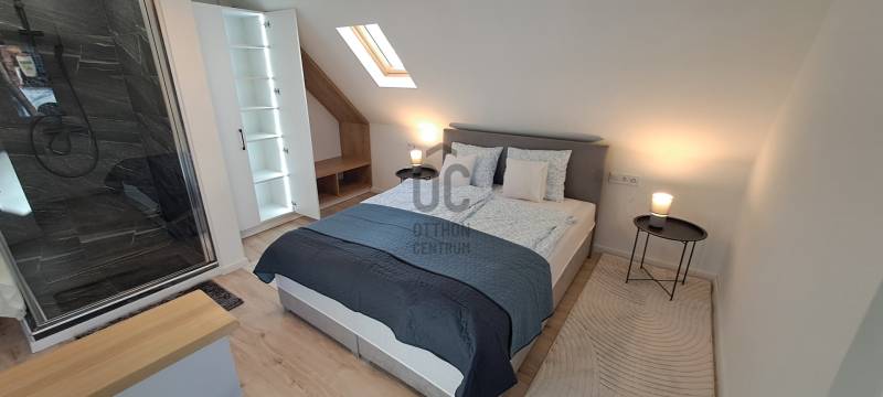 Tisztelt Érdeklődő!Ha Ön is a nyugalmat és a természet közelségét keresi, miközben befektetésben is gondolkodik, akkor ez a Makó, Maros-parti üdülősorán elhelyezkedő, felújított nyaraló apartman tökéletes választás!A 384 m²-es osztatlan közös tulajdonú telken található tetőtér beépítéses tégla iker apartman 1-es lakása 2 szobával, 40 négyzetméteres alapterülettel rendelkezik, így akár a család, baráti társaság vagy vendégek fogadására is ideális. A nappali – konyha a földszinten, míg a háló és a fürdő a tetőtérben került kialakításra. A tágas belső terek modern és igényes kialakításúak: a konyha és nappali járólappal burkolt, míg a hálószoba vízálló laminált padlót kapott A komfortot tovább növeli, hogy a hálószobában saját mosdó és tuskabin található. A WC a földszinten kapott helyet.A ház kívül-belül felújított, korszerű műszaki megoldásokkal felszerelt. Az elektromos padlófűtés és az okos Ariston bojler gondoskodik a kellemes hőmérsékletről, illetve a melegvízről. A padlófűtés wifin keresztül is szabályozható. A hőszigetelt műanyag nyílászárók, a tetőtér kőzetgyapot szigetelése és az épület külső hőszigetelése biztosítják az energiatakarékosságot és a hosszú távú fenntarthatóságot. A közművek: elektromos áram 3x20A, jelenleg közös a vízóra a 2-es lakással, de külön körön a két lakás, előkészítve almérők felszerelésére. Szennyvíz gyűjtése 1000 literes tartályban Klíma előkészítés, tv antenna előkészítés, illetve már telepített kamera az utcafronton, mely internetről vezérelhető.A Maros-part mindössze 200 méterre található, a városi strand, a kalandpart és a lombkoronasétány szinte karnyújtásnyira van. A városközpont pedig autóval 7 perc, kerékpárral 10 perc, gyalogosan 35- 40 perces sétával elérhető.Az apartman teljes berendezéssel kerül átadásra, így azonnal birtokba vehető. A rendezett kertben a pihenést szolgálja majd egy leendő közös szauna, melynek az elektromos előkészítése megtörtént. Parkolás közvetlenül az apartman előtt biztosított.Akár saját nyaralóként, akár befektetési célra keres ingatlant, ez a lehetőség ritkaság a piacon. Ne maradjon le róla! A két apartman egyben is megvásárolható, 54,9 MFt-os áron. Érdeklődjön most és tekintse meg személyesen, akár mindkét lakást!Makóról bővebben itt: http://mako.hu/makoi-seta/Legyen tisztában pénzügyeivel, mielőtt elkötelezi magát! Ebben díjmentesen az Ön rendelkezésére áll bankfüggetlen hitelközvetítőnk.Vevőinket profi és kedvező díjazású ügyvédi háttérrel is segítjük a szerződéskötés során.Az ingatlanról rövid bemutató videó is készült. Ha ezt a hirdetést az Otthon Centrum weboldalán nézi, akkor a videó azonnal indítható a képgaléria elején. Ha egy másik weboldalon találta ezt a hirdetést, kérem, nyissa meg az Otthon Centrum weboldalát, kattintson a „Regisztrációs szám keresése” menü pontra, és írja be ezt a regisztrációs számot a keresőbe: NY012371 Itt meg tudja tekinteni az ingatlanról készült videót és még több képet, vagy írjon nekem, és szívesen elküldöm a felvételt, képeket.#eladoingatlan #nyaralo #befektetes #otthoncentrum #modernotthon #pihenes #termeszetkozelben #okosotthon #ingatlanpiac #ocmako #kikapcsolodas #dreamhome #otthoncentrummako #veledmindenlepesnel #almokatepitunk #bluecottage #marospartiapartman #oc #biztositas #hitel