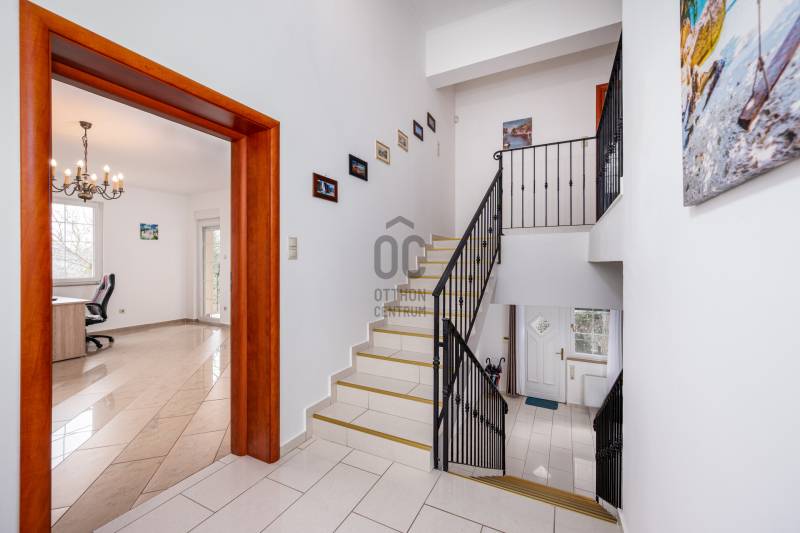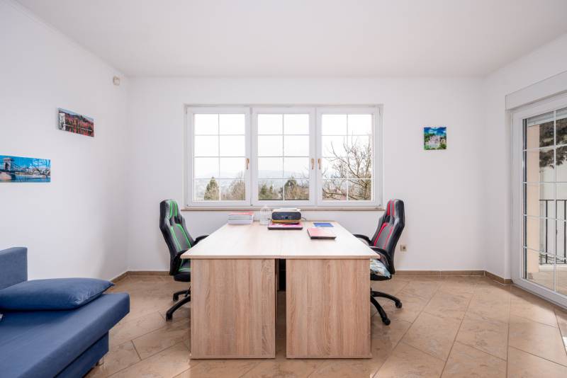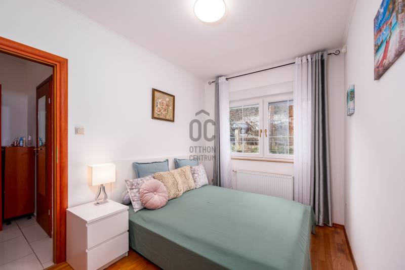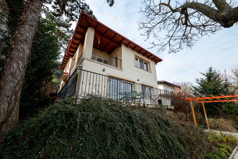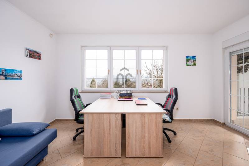 Gyönyörű panorámás családi ház eladó Adyliget lábánál. - 2 nappali- 4 hálószoba- 2 fürdőszoba - infraszauna + zuhanyzó- gardrób- mosókonyhaA ház 2009-ben épült, nagyon jó állapotú, 4 szintes, csúsztatott félemeletes kialakítással. Kétgenerációs házzá könnyen alakítható.A földszinti amerikai konyhás nappalihoz 22 m2-es terasz kapcsolódik. Az emeleti nappaliban konyha kialakítható, így egy szeparált lakrész jöhet létre.A fűtést gázkazán biztosítja részben radiátoros, részben padlófűtéses kialakítással. A ház riasztórendszerrel felszerelt.A házat gyönyörűen parkosított kert övezi, melyben egy dísztó is helyet kapott.Parkolásra a kertben 2 autó számára nyitott beálló biztosított.A közelben több nemzetközi iskola megtalálható (Francia Iskola, Amerikai Iskola, SEK)Tömegözlekedés szempontjából a hűvösvölgyi végállomásra futnak be a buszok (157, 57, 257, 63)A környék infrastrukturális ellátottsága kiváló, számos bevásárlási lehetőség (LIDL, Spar, Tesco), posta, gyógyszertár, orvosi rendelő, továbbá iskola, óvoda áll rendelkezésre.Irányár 850.000 Euro.Ha felkeltette érdeklődését és szeretné megtekinteni, várom hívását!
