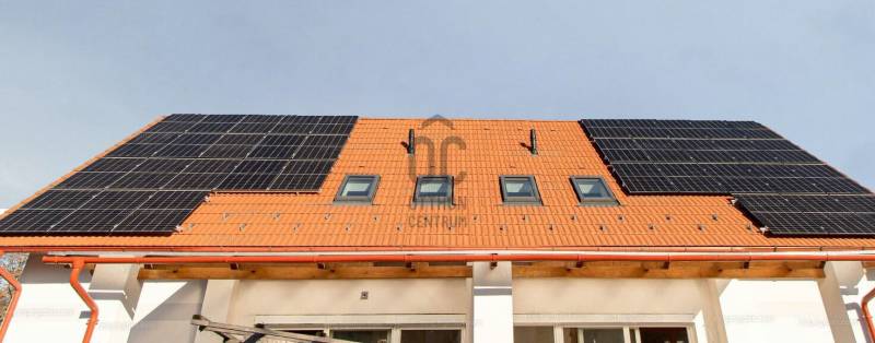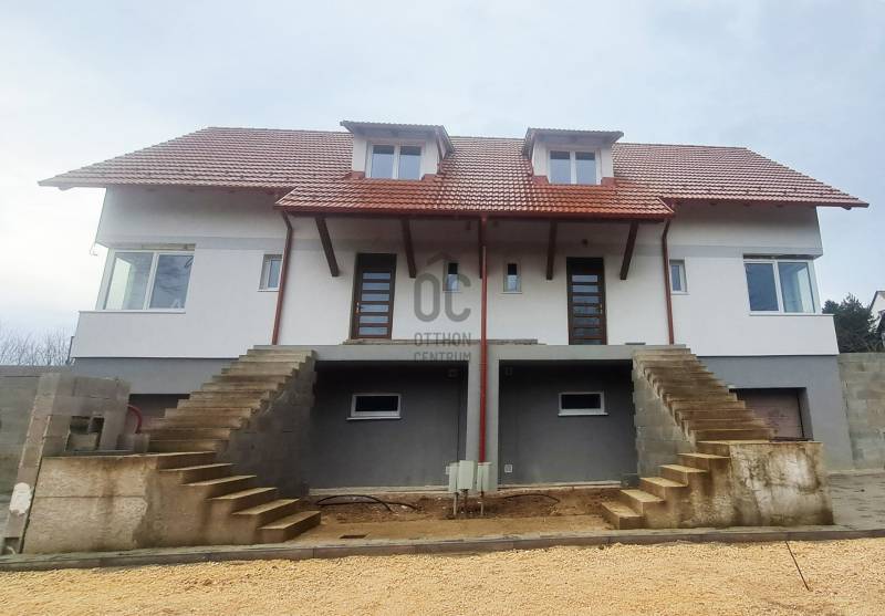 Wikipédia szerint, Zsámbék, „az évi 550 milliméter átlagos csapadékmennyiségével az ország egyik legszárazabb, mégis egyben legkellemesebb éghajlatú települése”.Itt kínálok eladásra, egy új építésű ikerházat, a főváros közelében, mégis egy hangulatos kistelepülésen, zöld környezetben, amely remekül megközelíthető.A ház teljesen alá lett pincézve, tehát a 135 m² lakótérhez, még hozzájön 68 m², itt található a garázs, a kazánház és még egy háztartási helyiség kialakítására is van lehetőség.Kazánházról beszélek, holott napelemek és Fisher hőszivattyú biztosítja a fűtést, a hűtést (padló és mennyezeti hőleadókkal), de azért megtalálható itt egy gázcirkó is a rendszerre kötve.A ház nem teljesen készült el, 85%-os készültségi állapotban van, így a leendő tulajdonosnak még van lehetősége, hogy saját ízlése szerint változtasson a végeredményen.Műszaki Tartalom:- 38cm blokktégla, 15cm homlokzati szigetelés- Betoncserép héjazat, színezett acéllemez csatornarendszer- 7 kW-os hőszivattyús rendszer (Fisher),- 18db napelem lakásonként, és H tarifa- + Bosch 21,6 kW kondenzációs gázkazán- + 300 literes hőtároló- Műanyag ablakok, 3 rétegű üvegezéssel- Elektromos redőnyök, és garázskapu.Környezete:Kiváló választás azoknak, akik nyugodt környezetre vágynak, de a város közelségét is előnyben részesítik. Az M1 autópálya közelsége biztosítja Budapest gyors elérését.