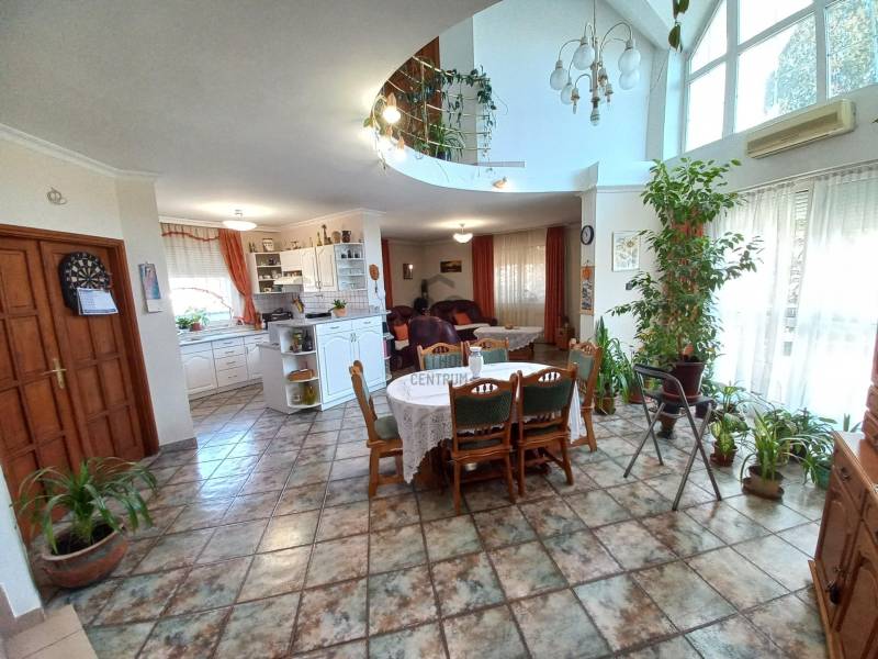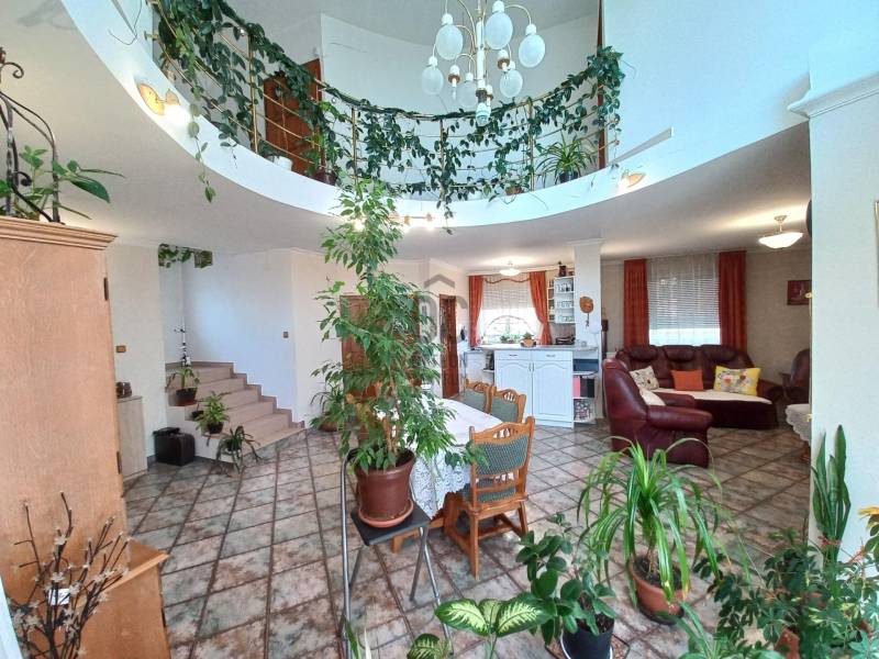 Debrecen, Tégláskertben nappali+5 szobás, 2 fürdőszobás, 1998-ban épült, galériás családi ház, 588 nm-es parkosított telekkel eladó!Egy különleges lehetőséget kínálunk mindenki számára, akik álmaik otthonát keresik Debrecenben, a csendes és rendezett Tégláskert városrészben. A ház 180 nm-es alapterületével és 588 nm-es telekméretével ideális választás családok számára, vagy akár befektetési céllal is. Az ingatlanban található öt szoba és két fürdőszoba maximális kényelmet biztosít, a tágas nappali pedig a közös pillanatok színtere lehet. A prémium kivitelezés és az egyedi tervezés garantálja, hogy az otthon nemcsak funkcionális, hanem esztétikus is. A ház világos, galériás elrendezése különleges atmoszférát teremt, amely a beépített bútorok és szekrények révén még praktikusabbá válik. A 40 nm-es terasz és a 12 nm-es erkély tökéletes helyszínt biztosít a pihenésre, ahol a rendezett kert látványa és a csendes környék nyugalma még inkább fokozza a kikapcsolódás élményét. Ingatlan jellemzői:- műanyag nyílászárók 2 rétegű üvegezéssel, redőnnyel- 38-as tégla falazat külső szigeteléssel- gáz és villany kazán- padló valamint radiátoros fűtésrendszer- 3 fázis- Riasztó, kaputelefon- garázs 24 nm-es- motoros mozgatású kerti kapu- tehermentesPraktikus tér kialakítása, sok ablaka miatt világos, kellemes hangulatú ingatlan. Többgyermekes családok számára kiváló választás, hiszen a tágas amerikai konyhás nappali 50 nm feletti, ahonnan közvetlen kijárat van a teraszra.Az ingatlan könnyen megközelíthető gépkocsival, busszal, az autópályára való feljutás is csak néhány perc.Közelben bevásárlóközpont, óvodák, iskolák, gyógyszertár, orvosi rendelő, piac és vendéglátás és minden egyéb szolgáltatás elérhető.Az ingatlanról teljes körű videó felvétel készült, a megtekintése érdekében weboldalunkon keresse a H497585 regisztrációs számon vagy keressen telefonon közvetlenül.Amennyiben ezt a ritka , egyedi paraméterekkel rendelkező ingatlan felkeltette érdeklődését várom telefonos megkeresését.