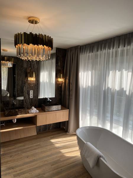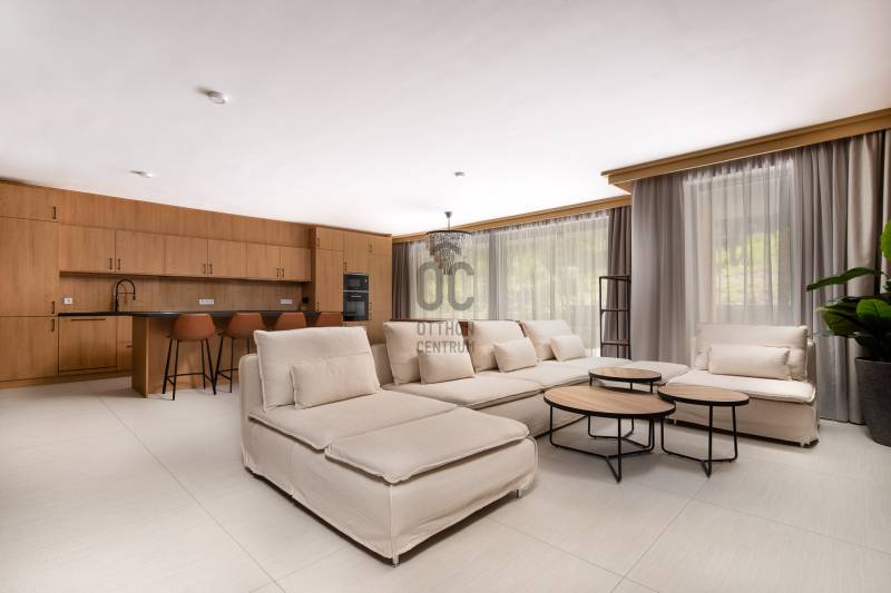 A teljes földszint két lakás, egy albetéten! Tökéletes választás akár két generáció számára is! A lakáshoz 800 m2 kert tartozik, a nagyobb terasz, adott esetben megoldható!Lakás mérete: 241,83 m2 + 20,72 m2 teraszA VÉTELÁRAT TOVÁBBI 27% ÁFA TERHELI, AMELY CÉGES VÁSÁRLÁS ESETÉN VISSZAIGÉNYELHETŐ!Projekt bemutatásaAZONNAL KÖLTÖZHETŐ!Zöld környezet, intimitásHárshegy legintimebb részén, a XII. kerület tőszomszédságában, félig az erdőben!A csendes zsák utca a II. kerület legzöldebb és legcsendesebb utcája!A minimál stílusban épülő lakások teljesen berendezve, az egyik legismertebb belső építész tervei alapján kerültek átadásra, a látványterveknek megfelelően, átlag fölötti minőségben egy számos referenciával rendelkező beruházótól.A hatalmas üvegfelülettel tűzdelt benapozott élhető lakások padlótól mennyezetig futó nyílászárókkal minimál stílusban hatalmas teraszokkal kerülnek kialakításra, a természetvédelmi terület ölelésében.Az épületből kilépve vagy akár a teraszra kiülve a madárcsicsergésen felül az erdei friss levegő elfeledteti a stresszes mindennapokat. A teljes ellazuláshoz hozzájárul a projektben épülő épületek közti poolhouse, amely medence szolgáltatását a 3 kis épület lakói vehetik igénybe.A földszinti lakásoknál privát kertkapcsolat, az emeletieknél nagyméretű terasz.Az épület műszaki felszereltsége tükrözi a minőséget: a külső falak, 38 cm-es Porotherm téglából, a válaszfalak Ytongból,a lépcsőház és lakásokat elválasztó falak hanggátló téglából készültek.- hőszivattyús rendszerrel táplált padlófűtés és mennyezet fűtés és hűtés- hatalmas alumínium nyílászárók 3 rétegű üvegezéssel- több ponton záródó biztonsági ajtók- Smart Home rendszer - A szaniterek, burkolatok, belső ajtók, bútorok, ágyneműk, függöny stb. mindent tartalmaz a vételár, tulajdonképpen csak a ruhákat kell vinni- Az alapfelszereltség részét képezi a hatalmas alumínium lamelákkal rendelkező motoros zsalúzia is.Az amerikai, francia, spanyol iskola 10-15 perc. A Széll Kálmán tér 10 perc.A közelben megtalálható minden szolgáltatás (vegyesbolt,bevásárlóközpont, egészségügyi szolgáltatások, sportolási lehetőségek) A lakásokhoz 2 db garázshely és 1 db tároló kötelezően vásárolandó.