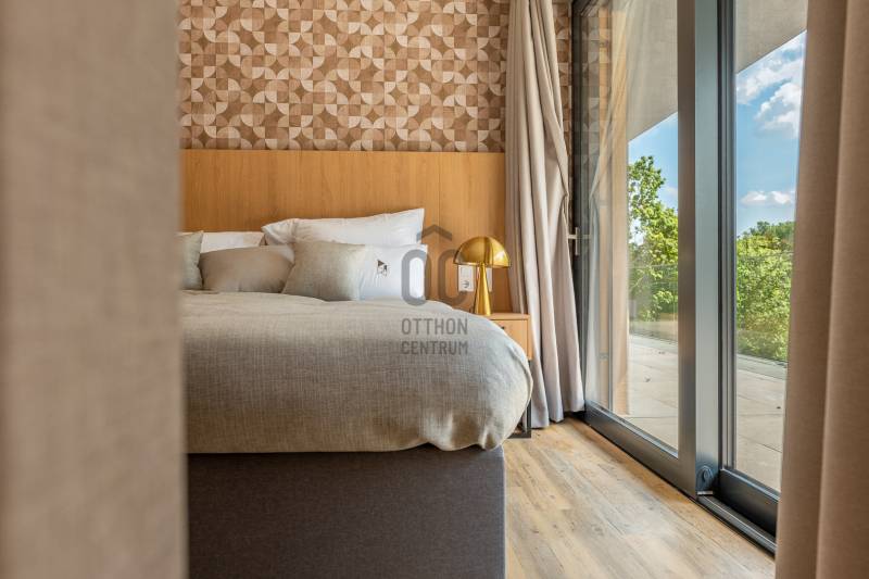 Projekt bemutatásaAZONNAL KÖLTÖZHETŐ!Zöld környezet, intimitásHárshegy legintimebb részén, a XII. kerület tőszomszédságában, félig az erdőben!A csendes zsák utca a II. kerület legzöldebb és legcsendesebb utcája!A minimál stílusban épülő lakások teljesen berendezve, az egyik legismertebb belső építész tervei alapján kerültek átadásra, a látványterveknek megfelelően, átlag fölötti minőségben egy számos referenciával rendelkező beruházótól.A hatalmas üvegfelülettel tűzdelt benapozott élhető lakások padlótól mennyezetig futó nyílászárókkal minimál stílusban hatalmas teraszokkal kerülnek kialakításra, a természetvédelmi terület ölelésében.Az épületből kilépve vagy akár a teraszra kiülve a madárcsicsergésen felül az erdei friss levegő elfeledteti a stresszes mindennapokat. A teljes ellazuláshoz hozzájárul a projektben épülő épületek közti poolhouse, amely medence szolgáltatását a 3 kis épület lakói vehetik igénybe.A földszinti lakásoknál privát kertkapcsolat, az emeletieknél nagyméretű terasz.Az épület műszaki felszereltsége tükrözi a minőséget: a külső falak, 38 cm-es Porotherm téglából, a válaszfalak Ytongból,a lépcsőház és lakásokat elválasztó falak hanggátló téglából készültek.- hőszivattyús rendszerrel táplált padlófűtés és mennyezet fűtés és hűtés- hatalmas alumínium nyílászárók 3 rétegű üvegezéssel- több ponton záródó biztonsági ajtók- Smart Home rendszer - A szaniterek, burkolatok, belső ajtók, bútorok, ágyneműk, függöny stb. mindent tartalmaz a vételár, tulajdonképpen csak a ruhákat kell vinni- Az alapfelszereltség részét képezi a hatalmas alumínium lamelákkal rendelkező motoros zsalúzia is.Az amerikai, francia, spanyol iskola 10-15 perc. A Széll Kálmán tér 10 perc.A közelben megtalálható minden szolgáltatás (vegyesbolt,bevásárlóközpont, egészségügyi szolgáltatások, sportolási lehetőségek) A lakásokhoz 2 db garázshely és 1 db tároló kötelezően vásárolandó.