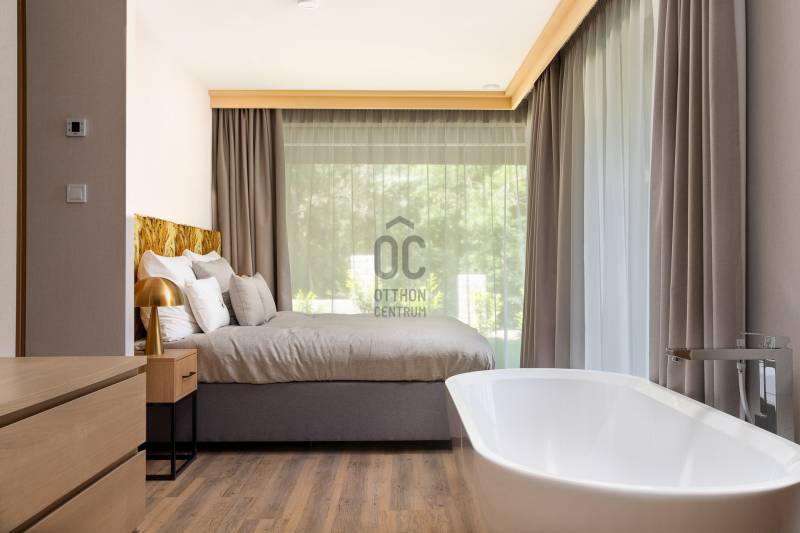 Projekt bemutatásaAZONNAL KÖLTÖZHETŐ!Zöld környezet, intimitásHárshegy legintimebb részén, a XII. kerület tőszomszédságában, félig az erdőben!A csendes zsák utca a II. kerület legzöldebb és legcsendesebb utcája!A minimál stílusban épülő lakások teljesen berendezve, az egyik legismertebb belső építész tervei alapján kerültek átadásra, a látványterveknek megfelelően, átlag fölötti minőségben egy számos referenciával rendelkező beruházótól.A hatalmas üvegfelülettel tűzdelt benapozott élhető lakások padlótól mennyezetig futó nyílászárókkal minimál stílusban hatalmas teraszokkal kerülnek kialakításra, a természetvédelmi terület ölelésében.Az épületből kilépve vagy akár a teraszra kiülve a madárcsicsergésen felül az erdei friss levegő elfeledteti a stresszes mindennapokat. A teljes ellazuláshoz hozzájárul a projektben épülő épületek közti poolhouse, amely medence szolgáltatását a 3 kis épület lakói vehetik igénybe.A földszinti lakásoknál privát kertkapcsolat, az emeletieknél nagyméretű terasz.Az épület műszaki felszereltsége tükrözi a minőséget: a külső falak, 38 cm-es Porotherm téglából, a válaszfalak Ytongból,a lépcsőház és lakásokat elválasztó falak hanggátló téglából készültek.- hőszivattyús rendszerrel táplált padlófűtés és mennyezet fűtés és hűtés- hatalmas alumínium nyílászárók 3 rétegű üvegezéssel- több ponton záródó biztonsági ajtók- Smart Home rendszer - A szaniterek, burkolatok, belső ajtók, bútorok, ágyneműk, függöny stb. mindent tartalmaz a vételár, tulajdonképpen csak a ruhákat kell vinni- Az alapfelszereltség részét képezi a hatalmas alumínium lamelákkal rendelkező motoros zsalúzia is.Az amerikai, francia, spanyol iskola 10-15 perc. A Széll Kálmán tér 10 perc.A közelben megtalálható minden szolgáltatás (vegyesbolt,bevásárlóközpont, egészségügyi szolgáltatások, sportolási lehetőségek) A lakásokhoz 2 db garázshely és 1 db tároló kötelezően vásárolandó.