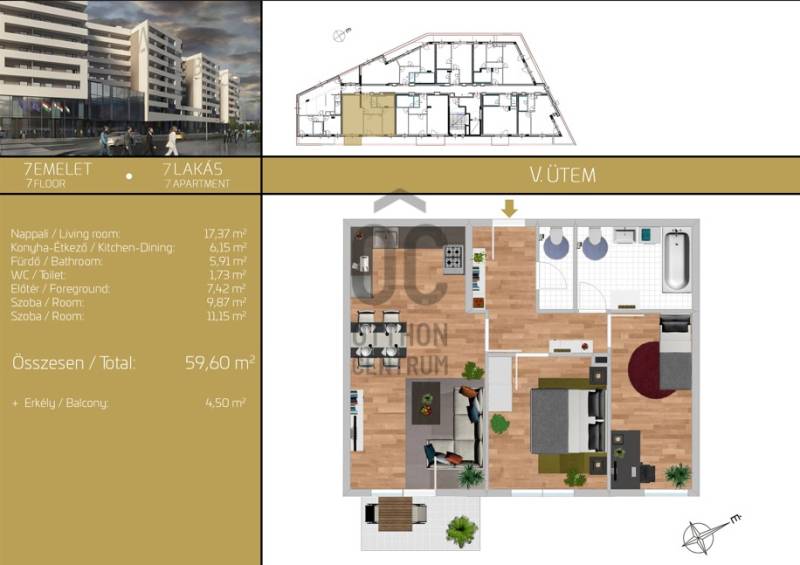 Energiatakarékos, 2026 végén költözhető újépítésű lakások.Budapest XIX. kerületének kiemelkedő közlekedési pontján épülő, modern lakónegyed olyan új közösségi teret hoz létre, ahol minden generáció megtalálja a helyét.Metró, vonat és több buszjárat, biztosítja, hogy nagyon rövid idő alatt Budapest centrumába, vagy a Liszt Ferenc repülőtérre jussanak az itt élők.Az épülő projekt lakásai alkalmasak, rövid és hosszú távú kiadásra, több generáció egymás mellett élésére.A lakóépület komplexum több ütemben épül fel, jelenleg az V. ütem építése zajlik.Az épületegyüttesben összesen 350 lakás készül, ebből az I. ütemben 98 db., a II. ütemben 118 db., az V. ütemben 58 db épül meg.Az I. ütem lakásai 2024 év végén átadásra kerültek. A II. ütem lakásai 2026. elején kerülnek átadásra.A lakások és az épületek között zárt átriumos folyosókon keresztül biztosított az átjárás.A földszint + 8 emelet magas épületet elegáns, fákkal, cserjékkel tarkított terek veszik körül.A lakások lépcsőházanként két-két lifttel közelíthetőek meg.A lakások típusai: Stúdió, 1 szobás, 2 szobás, 3 szobásMinden lakástípus elérhető jelenleg.A lakások jellemzői:Minden lakás rendelkezik erkéllyel vagy terasszal, és néhány exkluzív lakás pedig saját zöldrésszel.•A lakások hűtése és fűtése alacsony energia igényű, hőszivattyús rendszerű, mennyezeti technológiával biztosított•Tágas szobák és erkélyek, nagy, nyitott terű nappalirészek•Konyha, amely külön van, de mégis a nappali része•Nagy üvegfelületek, hőszigetelt üvegezésű műanyag nyílászárók formájában, amelyek sok természetes fényt biztosítanak•A szobákban nedvesség és cseppálló laminált padló•Igényes, minőségi kerámia padlók és falburkolatok a fürdőszobákban és WC-kben,•Az apartman típusától függően kádak vagy zuhanyzók állnak rendelkezésre•A közös helyiségek energia igénye napelemes rendszerrel megoldott.A gépkocsik elhelyezésére a teremgarázsban lesz lehetőség a -1 és -2 szinteken, ahol számos különálló és zárható tárolóhelyiség és elektromos töltési lehetőség is kialakításra kerül.Garázs:Méret:11,25nm-18,3nmÁr: 4,85 M Ft- 6,15M FtA jelen adatok tájékoztató jellegűek, ezért a Beruházó (sem a hirdető) azok változásával, vagy bármely attól való eltéréssel kapcsolatban semmilyen kötelezettséget, vagy felelősséget nem vállal.Az alaprajzokon ábrázolt berendezési tárgyak és bútorok, a burkolatok megjelenése nem képezi a szerződés tárgyát. A pontos felszereltségről a műszaki leírásban olvashat bővebben.Az aktuális lakáskínálatról és árakról érdeklődjön telefonon!Projekt bemutatásaEnergia takarékos újépítésű lakások.A II. ütem lakásai 2026 elején költözhetőek.Az V. ütem lakásai 2027 elején költözhetőek.Budapest XIX. kerületének kiemelkedő közlekedési pontján épülő, modern lakónegyed olyan új közösségi teret hoz létre, ahol minden generáció megtalálja a helyét.Metró, vonat és több buszjárat, biztosítja, hogy nagyon rövid idő alatt Budapest centrumába, vagy a Liszt Ferenc repülőtérre jussanak az itt élők.Az épülő projekt lakásai alkalmasak, rövid és hosszú távú kiadásra, több generáció egymás mellett élésére.A lakóépület komplexum több ütemben épül fel, jelenleg II. és az V. ütem építése zajlik.Az épületegyüttesben összesen 350 lakás készül, ebből az I. ütemben 98 db., a II. ütemben 118 db., az V. ütemben 58 db épül meg.Az I. ütem lakásait 2024 év végén a lakók birtokba vették. A lakások és az épületek között zárt átriumos folyosókon keresztül biztosított az átjárás.A földszint + 8 emelet magas épületet elegáns, fákkal, cserjékkel tarkított terek veszik körül.A lakások lépcsőházanként két-két lifttel közelíthetőek meg.A lakások típusai: Stúdió, 1 szobás, 2 szobás, 3 szobás, 4 szobásMinden lakástípus elérhető jelenleg.A lakások jellemzői: Minden lakás rendelkezik erkéllyel vagy terasszal, és néhány exkluzív lakás pedig saját zöldrésszel.•A lakások hűtése és fűtése alacsony energia igényű, hőszivattyús rendszerű, mennyezeti technológiával biztosított•Tágas szobák és erkélyek, nagy, nyitott terű nappalirészek•Konyha, amely külön van, de mégis a nappali része•Nagy üvegfelületek, hőszigetelt üvegezésű műanyag nyílászárók formájában, amelyek sok természetes fényt biztosítanak•A szobákban nedvesség és cseppálló laminált padló•Igényes, minőségi kerámia padlók és falburkolatok a fürdőszobákban és WC-kben, •Az apartman típusától függően kádak vagy zuhanyzók állnak rendelkezésre•A közös helyiségek energia igénye napelemes rendszerrel megoldott.A gépkocsik elhelyezésére a teremgarázsban lesz lehetőség a -1 és -2 szinteken, ahol számos különálló és zárható tárolóhelyiség és elektromos töltési lehetőség is kialakításra kerül.Garázs: Méret:11,5nm-18,25nmAz árakról érdeklődjön az értékesítőnél.Tároló:Méret 4,2nm-14,9nmAz árakról érdeklődjön az értékesítőnél.A jelen adatok tájékoztató jellegűek, ezért a Beruházó (sem a hirdető) azok változásával, vagy bármely attól való eltéréssel kapcsolatban semmilyen kötelezettséget, vagy felelősséget nem vállal.Az alaprajazokon ábrázolt berendezési tárgyak és bútorok, a burkolatok megjelenése nem képezi a szerződés tárgyát. A pontos felszereltségről a műszaki leírásban olvashat bővebben.Az aktuális lakáskínálatról és árakról érdeklődjön telefonon!
