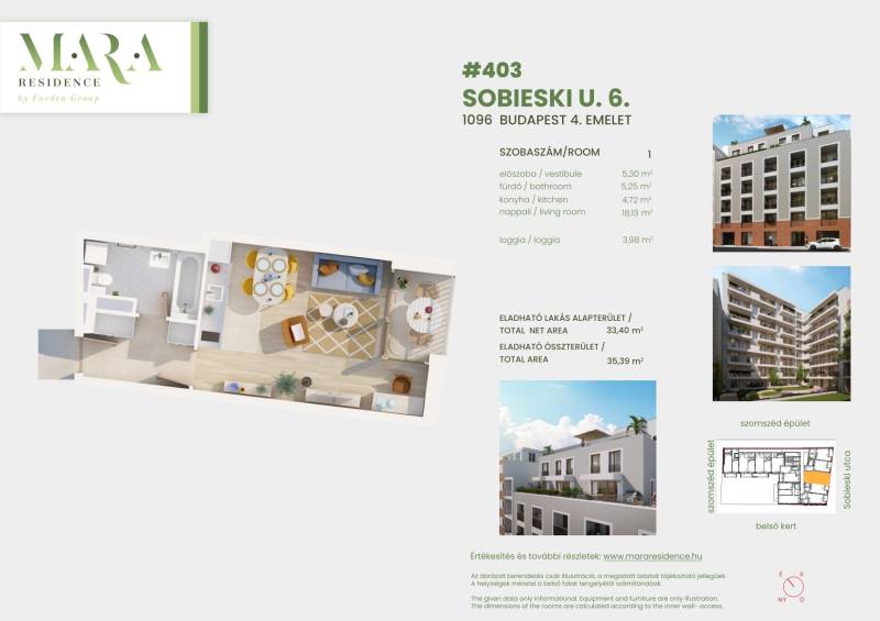 Projekt bemutatásaAzoknak, akik nem szeretik a több száz lakásos társasházakat, kitűnő lehetőség ez a 67 lakásos társasház Ferencvárosban.Dinamikusan fejlődő közvetlen környezet- további értéknövekedési potenciál!A LAKÁSOK 80%-a MÁR ELKELT!A MARA RESIDENCE-től egy sarokra számos villamosmegálló található (2,24, 28, 37, 51, 51A), de a Klinikák és a Nagyvárad téri metro megálló is csak kb.10 perc, illetve a 4-6-os villamos vonala is 10-15 perc sétával elérhető. Így a város bármely pontjára könnyen és gyorsan eljuthat.A belvárosi lokációnak köszönhetően, a közelben sokféle üzlet és szolgáltatás érhető el. Egy kellemes sétával kiváló kulturális és szórakozási lehetőségek között válogathatnak az környéken élők. Legyen szó egy jó szórakozóhelyről, múzeumról, moziról, vagy színházról, nem kell messze menni.A társasház közvetlen környezetében számtalan kellemes étterem, bár található, de aki csak egy kis levegőre vágyik az egy sarokra megtalálja a Kerekerdő Parkot vagy sétálhat egy nagyot a közeli Dunaparton.KÖNNYŰ, GARANTÁLT BÉRBEADHATÓSÁG, MAGAS BÉRLETI DÍJAKA környéken található, részben a közelmúltban épült egyetemi tömbök és irodaházak közelsége miatt egyre több külföldi diák, valamint a közelben, multinacionális nagyvállalatoknál dolgozó, stabil anyagi háttérrel rendelkező munkavállaló szeretne a területen lakást bérelni. Ugyanakkor a rendelkezésre álló bérbeadó, jó minőségű ingatlanállomány ezt az igényt egyelőre nem képes kiszolgálni.A bérleti díjak évről-évre emelkednek, ezáltal biztosítva a befektetési céllal vásárlóknak megfelelő hozamot.ÉRTÉKÁLLÓ, BIZTONSÁGOS BEFEKTETÉSA megújult lakókörnyezetet biztosító IX. kerület kiváló elhelyezkedésével, gondozott parkjaival, kellemes utcáival, szép épületeivel, kiváló infrastruktúrájával az utóbbi évtizedekben tömegesen vonzza az ide költözni vágyókat. Emiatt a lakások ára folyamatosan emelkedik és akkor sem kell aggódnia, ha újra értékesíteni szeretné majd, hiszen azt bármikor könnyen megteheti.HA NAGYOBB LAKÁSBA KÖLTÖZNIE A CSALÁDJÁVAL?Használja ki a Családi Otthonteremtési kedvezmény (CSOK), hiszen nálunk minden igényt kielégítő újépítésű családi otthonok közül is válogathat, melyekhez ki tudja használni a most elérhető állami támogatásokat. A CSOK mellé használja ki az áfa visszatérítést és illetékmentességet is!KÖZÖSSÉGI ÉLMÉNYA társasház 7.emeletének tetőteraszán egy 80m2-es közösségi grillterasz kerül kialakításra. Családi, baráti események kiváló helyszíne lehet majd ez kényelmes közösségi tér.Az alaprajzokat a lehető legjobban átgondoltuk, de előfordulhat, hogy Önnek más elképzelései vannak így még MÉG LEHETŐSÉGE VAN AZ ALAP - RAJZOK MÓDOSÍTÁSÁRA, ami magában foglalja akár az elektromos szerelvények elhelyezését és hasonló, a mindennapokban fontos apróságok egyeztetését is, amihez belsőépítész és lakberendező kollégáink szakértő segítséget nyújtanak!Személyes konzultációnk során nem csak az alaprajzi elrendezésre és optimalizálására van lehetősége, de számíthat ránk abban is, hogy az alapkínálatunkban szereplő burkolóanyagok közül megtalálja az egyéniségéhez legközelebb állót. Célunk, hogy az Ön lakása olyan legyen, amilyet megálmodott.VEVŐKIJELÖLÉS! Bármikor kiszállhat! Ha Ön úgy dönt, hogy már az átadás előtt eladná leszerződött ingatlanját, bármikor kereshet rá új Vevőt. Vevőkijelöléssel kötött szerződés esetén, szívesen átszerződünk az Ön által megjelölt ügyféllel. A vevőkijelöléssel kötött szerződés feltételeiről, várjuk érdeklődését.KEDVEZŐ FIZETÉSI ÜTEMEZÉS: 2 M Ft regisztrációs díj, majd 15 napon belül előszerződés aláírásakor a vételár 15%-ig kiegészítve, 85% pedig műszaki átadást követően. Tervezett átadása: legkésőbb 2027.01.negyedévHOGY ÖNNEK A LEGKÉNYELMESEBB LEGYEN AZ INGATLANVÁSÁRLÁS ÉS A HASZNOSÍTÁS EGYARÁNT:-BELSŐÉPÍTESZETI TANÁCSADÁS-LAKBERENDEZÉSI TANÁCSADÁS, LÁTVÁNYTERVEZÉS-HOME STAGING – Bérbeadásra felkészítés-KONYHA és BEÉPÍTETT BÚTOR TERVEZÉS, KIVITELEZÉS-RESALE és MÁSODÉRTÉKESÍTÉS-DÍJMENTES HITEL és CSOK ÜGYINTÉZÉS is része a szolgáltatásainknak.Várjuk megtisztelő érdeklődését