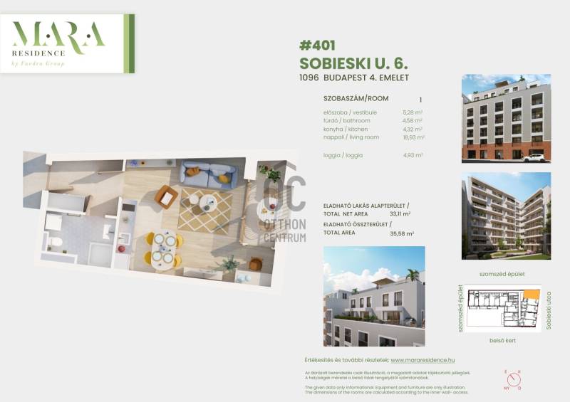 Projekt bemutatásaAzoknak, akik nem szeretik a több száz lakásos társasházakat, kitűnő lehetőség ez a 67 lakásos társasház Ferencvárosban.Dinamikusan fejlődő közvetlen környezet- további értéknövekedési potenciál!A LAKÁSOK 80%-a MÁR ELKELT!A MARA RESIDENCE-től egy sarokra számos villamosmegálló található (2,24, 28, 37, 51, 51A), de a Klinikák és a Nagyvárad téri metro megálló is csak kb.10 perc, illetve a 4-6-os villamos vonala is 10-15 perc sétával elérhető. Így a város bármely pontjára könnyen és gyorsan eljuthat.A belvárosi lokációnak köszönhetően, a közelben sokféle üzlet és szolgáltatás érhető el. Egy kellemes sétával kiváló kulturális és szórakozási lehetőségek között válogathatnak az környéken élők. Legyen szó egy jó szórakozóhelyről, múzeumról, moziról, vagy színházról, nem kell messze menni.A társasház közvetlen környezetében számtalan kellemes étterem, bár található, de aki csak egy kis levegőre vágyik az egy sarokra megtalálja a Kerekerdő Parkot vagy sétálhat egy nagyot a közeli Dunaparton.KÖNNYŰ, GARANTÁLT BÉRBEADHATÓSÁG, MAGAS BÉRLETI DÍJAKA környéken található, részben a közelmúltban épült egyetemi tömbök és irodaházak közelsége miatt egyre több külföldi diák, valamint a közelben, multinacionális nagyvállalatoknál dolgozó, stabil anyagi háttérrel rendelkező munkavállaló szeretne a területen lakást bérelni. Ugyanakkor a rendelkezésre álló bérbeadó, jó minőségű ingatlanállomány ezt az igényt egyelőre nem képes kiszolgálni.A bérleti díjak évről-évre emelkednek, ezáltal biztosítva a befektetési céllal vásárlóknak megfelelő hozamot.ÉRTÉKÁLLÓ, BIZTONSÁGOS BEFEKTETÉSA megújult lakókörnyezetet biztosító IX. kerület kiváló elhelyezkedésével, gondozott parkjaival, kellemes utcáival, szép épületeivel, kiváló infrastruktúrájával az utóbbi évtizedekben tömegesen vonzza az ide költözni vágyókat. Emiatt a lakások ára folyamatosan emelkedik és akkor sem kell aggódnia, ha újra értékesíteni szeretné majd, hiszen azt bármikor könnyen megteheti.HA NAGYOBB LAKÁSBA KÖLTÖZNIE A CSALÁDJÁVAL?Használja ki a Családi Otthonteremtési kedvezmény (CSOK), hiszen nálunk minden igényt kielégítő újépítésű családi otthonok közül is válogathat, melyekhez ki tudja használni a most elérhető állami támogatásokat. A CSOK mellé használja ki az áfa visszatérítést és illetékmentességet is!KÖZÖSSÉGI ÉLMÉNYA társasház 7.emeletének tetőteraszán egy 80m2-es közösségi grillterasz kerül kialakításra. Családi, baráti események kiváló helyszíne lehet majd ez kényelmes közösségi tér.Az alaprajzokat a lehető legjobban átgondoltuk, de előfordulhat, hogy Önnek más elképzelései vannak így még MÉG LEHETŐSÉGE VAN AZ ALAP - RAJZOK MÓDOSÍTÁSÁRA, ami magában foglalja akár az elektromos szerelvények elhelyezését és hasonló, a mindennapokban fontos apróságok egyeztetését is, amihez belsőépítész és lakberendező kollégáink szakértő segítséget nyújtanak!Személyes konzultációnk során nem csak az alaprajzi elrendezésre és optimalizálására van lehetősége, de számíthat ránk abban is, hogy az alapkínálatunkban szereplő burkolóanyagok közül megtalálja az egyéniségéhez legközelebb állót. Célunk, hogy az Ön lakása olyan legyen, amilyet megálmodott.VEVŐKIJELÖLÉS! Bármikor kiszállhat! Ha Ön úgy dönt, hogy már az átadás előtt eladná leszerződött ingatlanját, bármikor kereshet rá új Vevőt. Vevőkijelöléssel kötött szerződés esetén, szívesen átszerződünk az Ön által megjelölt ügyféllel. A vevőkijelöléssel kötött szerződés feltételeiről, várjuk érdeklődését.KEDVEZŐ FIZETÉSI ÜTEMEZÉS: 2 M Ft regisztrációs díj, majd 15 napon belül előszerződés aláírásakor a vételár 15%-ig kiegészítve, 85% pedig műszaki átadást követően. Tervezett átadása: legkésőbb 2027.01.negyedévHOGY ÖNNEK A LEGKÉNYELMESEBB LEGYEN AZ INGATLANVÁSÁRLÁS ÉS A HASZNOSÍTÁS EGYARÁNT:-BELSŐÉPÍTESZETI TANÁCSADÁS-LAKBERENDEZÉSI TANÁCSADÁS, LÁTVÁNYTERVEZÉS-HOME STAGING – Bérbeadásra felkészítés-KONYHA és BEÉPÍTETT BÚTOR TERVEZÉS, KIVITELEZÉS-RESALE és MÁSODÉRTÉKESÍTÉS-DÍJMENTES HITEL és CSOK ÜGYINTÉZÉS is része a szolgáltatásainknak.Várjuk megtisztelő érdeklődését
