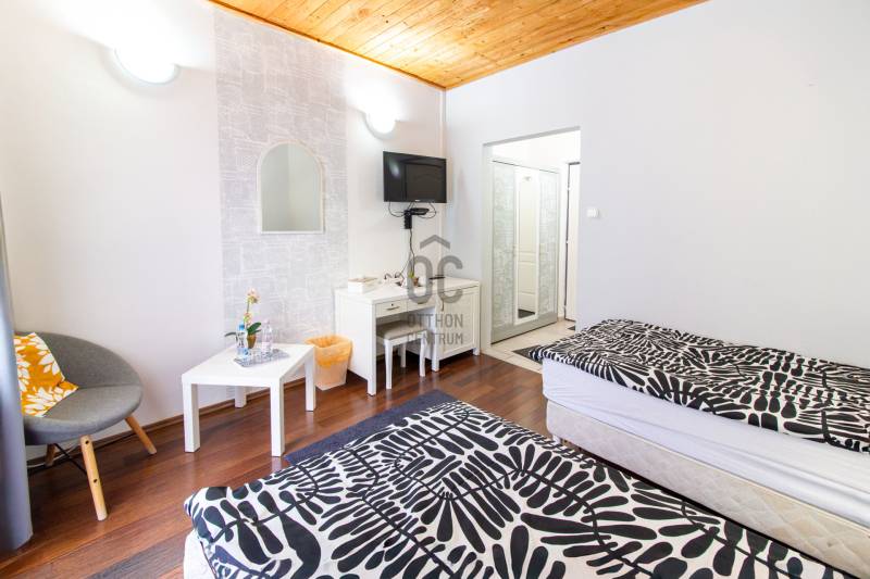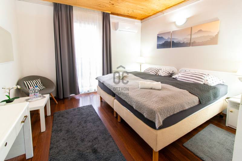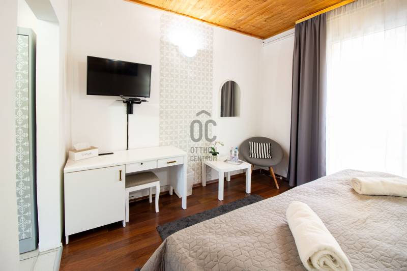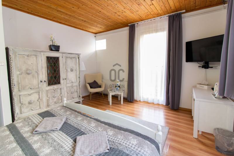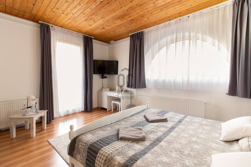 Étterem-Panzió Pécsett, a Mecsek festői környezetében – Napelemmel, teljes energiaellátással!Pécs szívében, a gyönyörű Mecsek hegységben, eladásra kínálunk egy kivételes adottságokkal rendelkező étterem-panziót. Az ingatlan 2905 nm-es, parkosított, körbekerített telken helyezkedik el, ahol a természet közelsége és a nyugalom garantált.A 650 nm-es épületben egy hangulatos, fedett terasz, egy 60 fős étterem és egy különálló, 40 fő befogadására alkalmas rendezvényterem is helyet kapott. A vendégek kényelmét a panzió hét klimatizált szobája biztosítja.Az ingatlan különlegessége, hogy napelemes rendszerrel van ellátva, amely teljes mértékben fedezi a létesítmény áramfogyasztását, így fenntartható és költséghatékony működést biztosít.A tulajdonosok számára egy önálló, 125 nm-es, háromszobás lakrész lett kialakítva, amely nyugodt otthont kínál a komplexum üzemeltetőinek.A helyszín rendkívül népszerű esküvők és egyéb rendezvények számára, akár 150 fős lakodalmak lebonyolítására is kiválóan alkalmas.Legyen szó vendéglátásról, intézményi, oktatási vagy nevelési célú hasznosításról, ez a komplexum minden elképzelésnek megfelel.Bővebb információért, megtekintésért várom hívását!