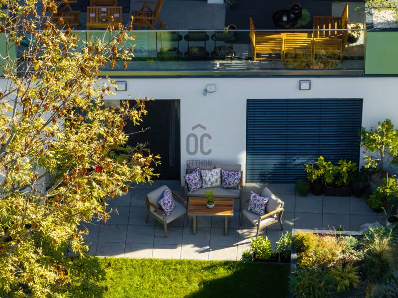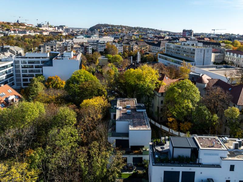 Klasszikus arisztokrácia és kortárs luxus egyedi enteriőrben – Üdv itthon!RÖVID ÖSSZEFOGLALÓBudapest XII. kerületének egyik legexkluzívabb részén, a Kis-Svábhegyen, 2024-ben épült kis lakásszámú lakópark első emeleti, 91 m²-es, 4 szobás, teraszos, kertkapcsolatos otthona várja új tulajdonosát. A klasszikus elegancia és a modern design harmonikus találkozása prémium minőségű anyaghasználattal, tágas terekkel és kifinomult részletekkel valósult meg. A komfortot dupla fürdő, teremgarázs és felszíni beálló, valamint nagy méretű tároló biztosítja a gördülékenyebb mindennapok érdekében.KIS-SVÁBHEGYA XII. kerület legelőkelőbb részén, a nagyköveti rezidenciák - pl. Osztrák Nagykövetség - közvetlen szomszédságában található az Evergreen Residence, amely egyszerre kínál természetközeli nyugalmat és a város közelségének kényelmét. A budai zöldövezet és a Városmajor közelsége friss, oxigéndús levegőt biztosít, miközben a környék infrastruktúrája – nívós iskolák, kiváló egészségügyi szolgáltatások, prémium bevásárlási és szórakozási lehetőségek – minden igényt kielégítenek.A VILLAPARK – Kortárs elegancia időtálló minőségbenA lakások gépjárművel és gyalogosan is könnyen megközelíthetők, a Csaba utca felől kényelmes bejárással. A Déli pályaudvar mindössze 5 perces sétára található, így a város bármely pontja gyorsan elérhető. A zöldövezet és a kiváló közlekedési adottságok kombinációja teszi ezt a helyet ideális választássá azok számára, akik belvárosias életre vágynak, mégis zöld életérzést szeretnénk. Ez ritka kombináció.A PROJEKT – Fenntartható luxus és innovatív építészetA négyszintes, mindössze 16 lakásos lakópark 3037 m²-es telken helyezkedik el, ahol prémium minőségű otthonok kaptak helyet. A tervezés során a kortárs építészeti megoldások és fenntartható technológiák harmonikus ötvözete valósult meg, így a lakások egyedi karakterrel és modern kényelmi funkciókkal rendelkeznek.Műszaki jellemzők- Az épület vízzáró vasbeton alaplemezen nyugszik, biztosítva a stabilitást.- Monolit vasbeton pillérvázas szerkezet és 20 cm-es YTONG falazat a kiváló hő- és hangszigetelés érdekében.- Lépéshangszigetelt födémek a tökéletes komfortért.A második ütemben mindössze két épület kapott helyet: az „E” épület kilenc, az „F” épület pedig hét lakást foglal magában. A diszkréció és a privát élettér kiemelt szerepet kapott a tervezésben – a lakások között nincsenek közös falak, így a nyugalom és a szeparáltság garantált.A LAKÁSAz F11-es lakás a második ütem legimpozánsabb darabja: Három égtáj felé nyitott, így a természetes fény egész nap áthatja az enteriőrt, amelyet aprólékos gondossággal terveztek meg.A domborzati adottságoknak köszönhetően egyik oldalról első emeleti, másik oldalról magasföldszinti elhelyezkedésű, így egyedülállóan ötvözi az emeleti elhelyezkedés - és a földszinti kertkapcsolat előnyeit.A 22 nm-es gránitburkolatú terasz, a 12,5 nm-es privát, füvesített kert, valamint a növénykazettás magas ágyás exkluzív természetközeli atmoszférát teremt.Enteriőr és felszereltségA lakás enteriőrje az arisztokratikus elegancia és a XXI. századi luxus tökéletes harmóniáját teremti meg. A főúri pompát idéző klasszikus jegyek és a letisztult modern design összefonódása olyan atmoszférát eredményez, amely egyszerre klasszikus és kifinomultan élhető. Az extravagáns esztétikumot a legmodernebb technológiai megoldások fűszerezik, így a múlt és a jelen grandiózus találkozása minden szempontból lenyűgöző élményt nyújt. Belépés egy másik dimenzióbaAz előtérbe lépve az egyedi tervezésű előszobabútor fogadja a vendéget, az első benyomás pedig azonnal érzékelteti, ez az otthon nem csupán lakótér, hanem egy különleges hangulatú modern műalkotásA master bedroom - a pihenés szentélye vagy privát tárgyaló Eredetileg fő hálószobaként funkcionált, ma azonban egy intim tárgyaló és relaxációs tér. Az itáliai mestermunkák egyik ékköveként szolgáló, eredeti bőr kárpitozású relaxfotelek tökéletes kényelmet biztosítanak. A történelmi eleganciát egy Mária Terézia-stílusú kristálycsillár koronázza meg, a térből pedig közvetlen kilátás nyílik a nyugodt, zöldellő „kiserdős” területre, amely teljes intimitást garantál.A fürdőszoba - egy aranyozott wellness-birodalomA fürdőszoba exkluzivitása vitathatatlan: a legmagasabb minőségű Villeroy&Boch szaniterek, többek között WC-bidé, kádszett és mosdó biztosítják a kifinomult eleganciát. Az enteriőr esszenciáját a 13 karátos arannyal futtatott DornBracht csaptelepek adják, amelyeket az igényes luxus kedvelői azonnal felismernek, és értékelnek.Étkező - neobarokk pompábanA XVI. Lajos korát idéző neobarokk étkezőgarnitúra a milánói kézműves mesterek keze munkáját dicséri. Az egyedi falfestés exkluzív műalkotásként emeli a tér atmoszféráját, miközben a luxusérzet minden pillanatban áthatja az étkezések élményét.A konyha - high-tech és arisztokrácia találkozásaAz egyedi tervezésű konyhabútor masszív kőpulttal, beépített prémium készülékekkel (Gaggenau, Bosch, Liebherr) és szigeten elhelyezett borhűtővel rendelkezik. A funkcionalitás és az esztétikum tökéletes harmóniáját a Villeroy&Boch mosogató, valamint az arannyal futtatott DornBracht csaptelep teszi teljessé.Nappali - rejtett luxusmegoldásokA konyha stílusához illeszkedő, mégis egyedi gyártású vitrinkombináció elegáns módon rejti el a TV-t, hogy a tér minden egyes eleme a kifinomult design szolgálatába álljonA hálószoba - főúri kényelemAz eredeti bőrrel kárpitozott, ágyneműtartós