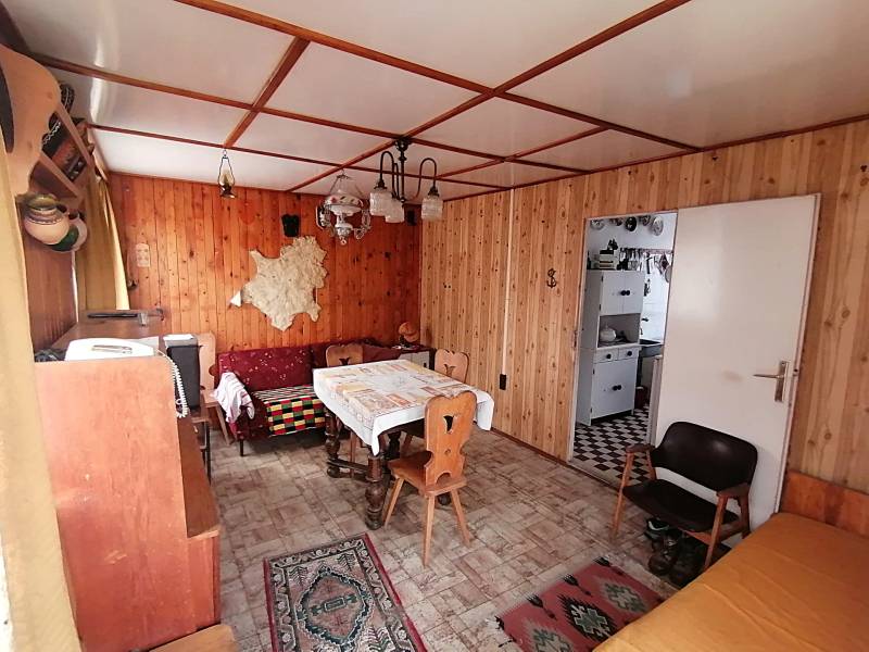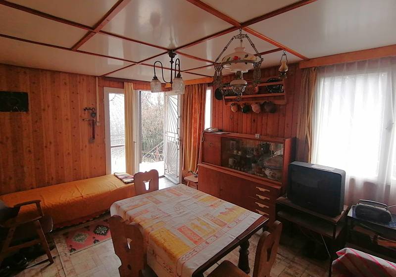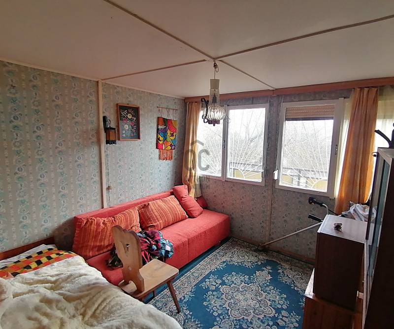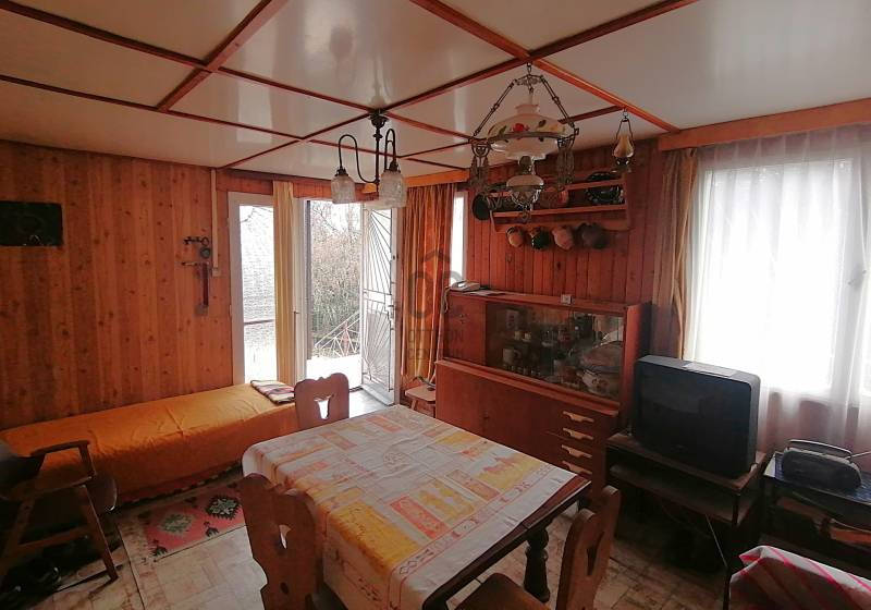 807 nm-es, belterületi telken található ez a 35 nm-es könnyűszerkezetes faház, amely teljes felújítás után ideális lehet akár hétvégi pihenőhelyként, akár vendégházként vagy akár állandó lakhatás céljára. A keleti tájolású ingatlan csendes, természetközeli környezetben helyezkedik el, a közelben erdővel, mégis könnyen megközelíthető részen. A közművek közül a víz és a villany be van vezetve, a csatorna helyett emésztő működik, a gázcsonk pedig a telken belül található. A ház jelenleg nem szigetelt, fűtés nincs, de a jó állapotú kéményhez cserépkályha építhető – szigetelés utólagosan kialakítható. A telken kocsibeálló, felújítandó garázs és kis tároló is található.Remek választás természetkedvelőknek, nyugalmat keresőknek vagy befektetőknek egyaránt.Rugalmasan megtekinthető, kérdés esetén hívjon bizalommal!Eladó, Szentendre, Boldogtanya, könnyűszerkezetes ház, hétvégi ház, nyaraló, faház, telek, felújítandó ház, kis ház nagy telekkel, vendégház kialakítására alkalmas, csendes környék, erdő közelében, ingatlan befektetésre