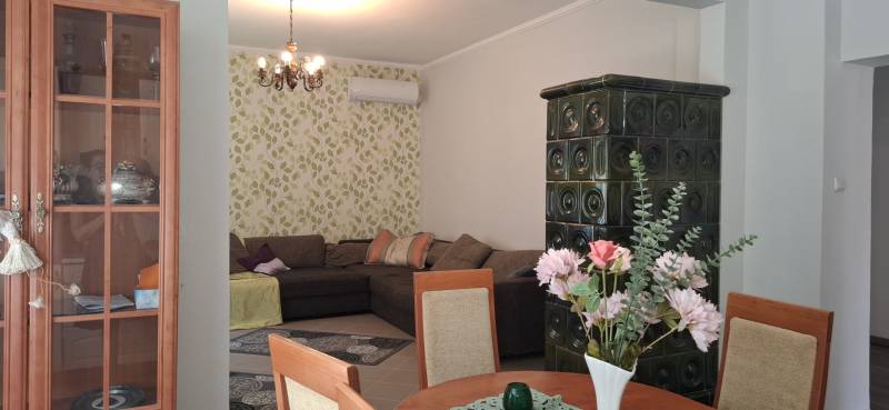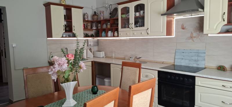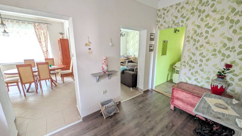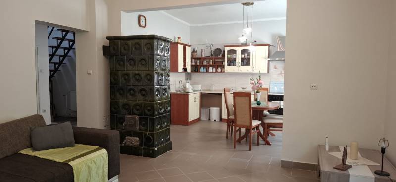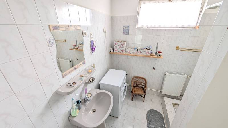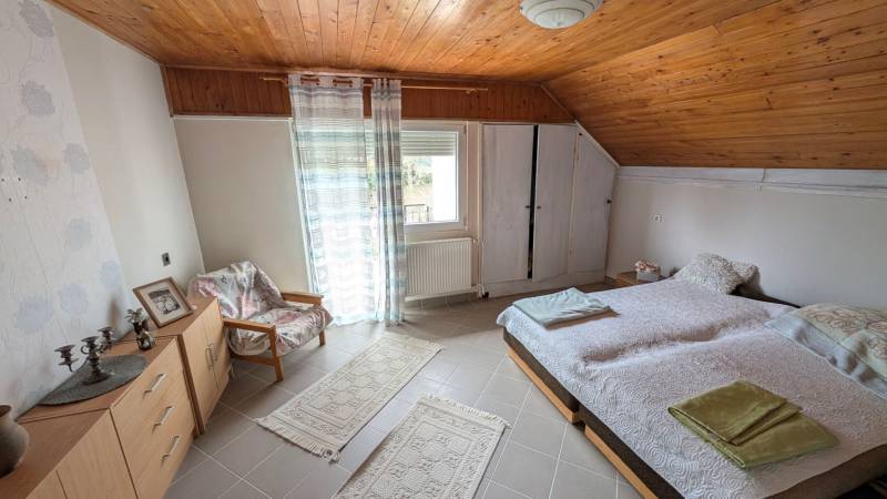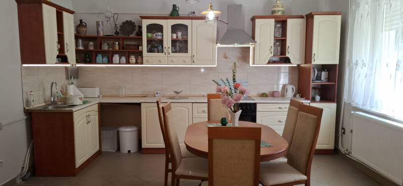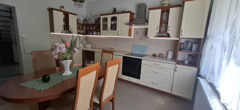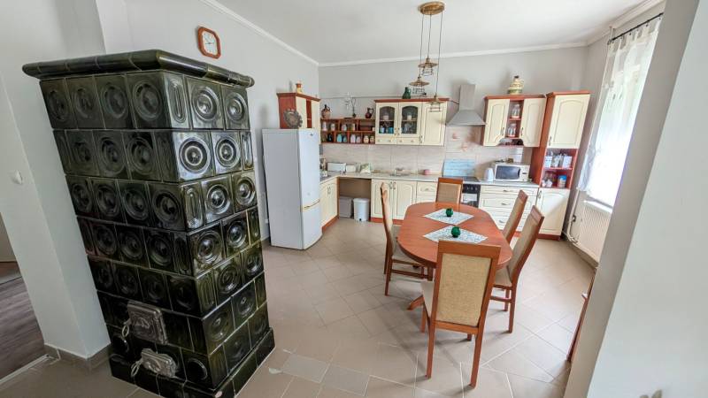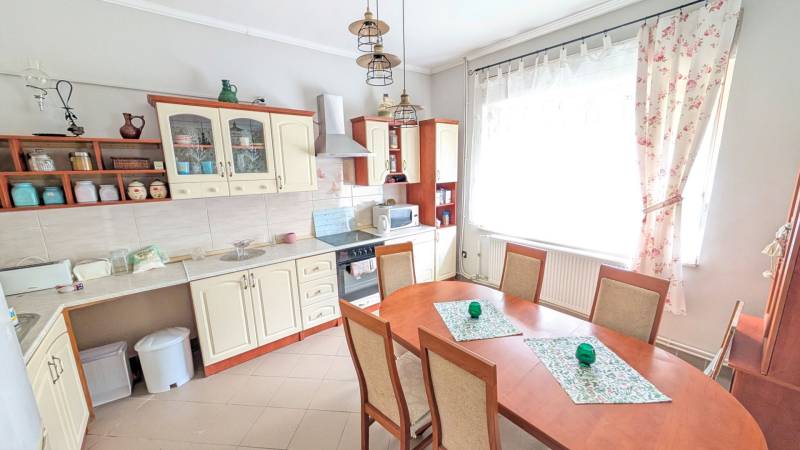 Jó elhelyezkedésű, azonnal költözhető tágas, kertes családi házas ingatlant kÍnálunk megvételre a népszerű Balatonkenesén, néhány száz méterre a városközponttól és a Balaton- parttól!Két lakás is kialakítható benne!Garázs, tároló, műhely, műterem önálló épületként elhelyezhető rajta. A telek 20 %-ig beépíthető. Kiváló választás mindazon családoknak, akik nyaralójukat vagy éppen állandó otthonukat keresik Kenesén, mert gyalogosan elérhető a strand, a vÍzpart, az óvoda, az iskola, a polgármesteri hivatal, a helyi és a távolsági buszmegállók, valamint a vasútállomás. Továbbá kiváló két lakás kialakÍtására is, mégpedig a két szint teljes elszeparálásával és egy új külső lépcső kivitelezésével megszűntetve a jelenlegi belső lépcsőházat.A szolgáltatások és a boltok is csupán néhány perces sétára vannak. Az önálló, földszint plusz tetőtér beépÍtett duplakomfortos, 5 szobás családi ház fűtéséről gáz-cirkó, cserépkályha és hűtő-fűtő kliima gondoskodik.A földszinten előszoba, közlekedő, amerikai konyhás nappali, 32 m2-es teraszkapcsolattal rendelkező szoba, kádas fürdőszoba, és egy több funkciót is betölthető, szintén terszkapcsolatos helyiség (iroda, gardróbszoba) kapott helyet. A tetőtérben közlekedő, három hálószoba és egy zuhanykabinos fürdőszoba és padlásszoba található. Két hálószoba közös erkéllyel rendelkezik, ahonnan részpanoráma nyÍlik a Balatonra.Az ingatlan a ’90-es években épült, 40-es téglából. A nyiilászárók részben már a korszerű műanyag nyiilászárókra lettek cserélve.Az 1231 m2-es telek egy kisebb elő- és egy nagyobb hátsó kertrésszel rendelkezik, mely utóbbibantároló, rózsalugas, néhány gyümölcsfa, diisznövények és füves terület találhatóak. A kertben több autó parkoltatására van lehetőség.Amennyiben szeretne többet megtudni vagy személyesen is megtekinteni az ingatlant, kérem, keressen a megadott elérhetőségeken, akár hétvégén is!