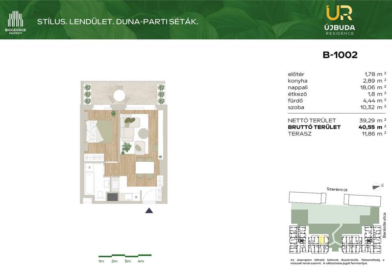 Projekt bemutatásaA Budapest XI. kerületében, a Barázda utcában megvalósuló Újbuda Residence nem csupán egy új építésű lakópark, hanem egy olyan innovatív fejlesztés, amely kivételes lehetőséget kínál mindazok számára, akik otthonukat vagy befektetésüket egy dinamikusan fejlődő, mégis nyugodt környezetben képzelik el.Ez a modern, 240 lakóegységet magában foglaló fejlesztés Újbuda folyamatosan megújuló környezetében, a Duna-parttól mindössze egy karnyújtásnyira található. Az épület kiváló választás lehet azok számára, akik a fővárosban szeretnének élni, de mégis közel a természethez és a vízparthoz. Az új lakások mellett tárolók és gépkocsi beállók is rendelkezésre állnak, ezzel biztosítva a lakók maximális kényelmét és praktikus életvitelét. A változatos méretű lakások között mindenki megtalálhatja a számára legmegfelelőbbet, legyen szó kisebb vagy nagyobb lakóterületről.A fejlesztés keretében egy fiatalok számára ideális, kisebb lakóegységekből álló épület is megvalósításra kerül, ami különösen vonzó lehet a fiatalabb generációk számára, akik a város nyüzsgése mellett szeretnének élni, ugyanakkor közel a természethez és a szabadidős tevékenységekhez.Az Újbuda Residence fejlesztésében változatos méretű és elrendezésű lakások kerülnek kialakításra, a 27 m2-es stúdiólakásoktól egészen a 70 m2-es, háromszobás lakásokig. Az épület alsóbb szintjein található lakások saját privát kertkapcsolattal rendelkeznek, míg a felsőbb emeletekről lenyűgöző panoráma nyílik a Gellért-hegyre. Minden lakás erkélyes, így a lakók élvezhetik a szabad levegő nyújtotta kényelmet és a környező zöldterületek látványát.A lakások kialakításánál elsőrangú belsőépítészeti megoldásokat alkalmaztak, amelyek több mint 4000 korábbi vásárlói visszajelzés alapján kerültek kidolgozásra. A belső anyagválasztékot a legjobb minőségű alapanyagokból állították össze, a lakások pedig egyedi igények szerint is alakíthatók, így mindenki megtalálhatja a számára legideálisabb megoldást.A rozsdaövezeti besorolásnak köszönhetően a vásárlók 5%-os áfa-visszaigénylésre is jogosultak, ami tovább növeli a fejlesztés vonzerejét.Az Újbuda Residence ideális választás fiatal egyedülállók, párok, kisgyermekes családok, valamint középkorúak számára, akik olyan lakóhelyet keresnek, ahol egyszerre élvezhetik a város nyújtotta lehetőségeket és a természet közelségét. A fejlesztés fiatalos, modern megjelenése, valamint a tágas parkok, zöldterületek biztosítják a nyugodt és kellemes életvitelt.A lakópark egyediségét tovább növeli a lakók számára kialakított tágas, dús növényzettel borított belső kert, amely tökéletes helyszínt biztosít a pihenésre és a kikapcsolódásra. Az épület alsóbb szintjein elhelyezkedő lakások privát kertkapcsolata pedig még inkább otthonossá varázsolja az itt eltöltött időt.