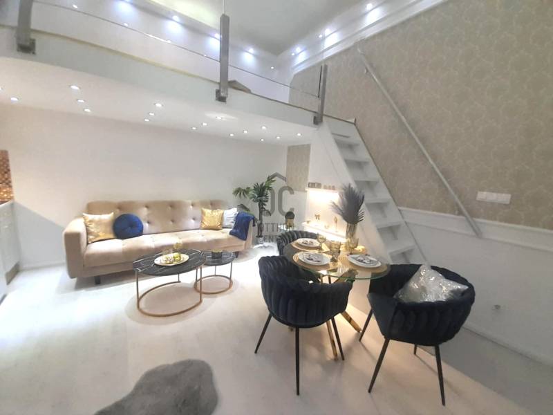Eladó a 6. kerületben, a Vörösmarty utcában, szép állapotú polgári épületben egy 1 szobás, tulajdoni lapon nettó 30 nm-es, állógalériás, teljesen felújított, dizájnos lakás, kialakított terasz résszel.LAKÁS, TÁRSASHÁZ- Hangulatos utca, frekventált belvárosi lokáció, szép épület, zöld belső udvar.- Berendezéssel, VADONATÚJ bútorokkal együtt, gépesítve is megvásárolható, ez megbeszélés tárgyát képzi!- TELJES felújításon esett át, a víz- és elektromos vezetékek cseréje megtörtént, újak a nyílászárók, burkolatok.- Alacsony rezsiköltséggel fenntartható, energiatakarékos berendezést kapott az otthon.- A belmagasság indokolttá tette az állógalériát (dupla), így növelve az ingatlan méretét.- A társasház rendezett, a lakóközösség kedves, folyamatosan karbantartják az épületet.KÖRNYÉK, TÖMEGKÖZLEKEDÉS- A Nyugati pályaudvar (10 perc séta) és az Oktogon (6 perc séta) között található.- Minden elérhető, ami a mindennapi élethez szükséges (SPAR, Hunyadi piac, kávézók, éttermek, konditerem stb.), valamint a WESTEND Bevásárlóközpont, ahol számos üzletet és szolgáltatást elérhetünk, mindössze 10 perc gyalog.- Az aktív élet kedvelőinek a Margitsziget és a Városliget egyaránt könnyedén megközelíthető.- Tömegközlekedés a közvetlen közelben: Villamos: 4-6, Metrók: 1-es és 3-as, Trolik: 73, 76, Busz: 105.Az ingatlan SAJÁT HELYRAJZI SZÁMMAL rendelkezik, 1/1-es tulajdon!Befektetésnek is szuper lehetőség, az elhelyezkedése és a felújított épület szépsége miatt könnyedén bérbe lehet adni!Amennyiben elnyerte tetszését és szeretné megtekinteni az ingatlant, hívjon bizalommal!