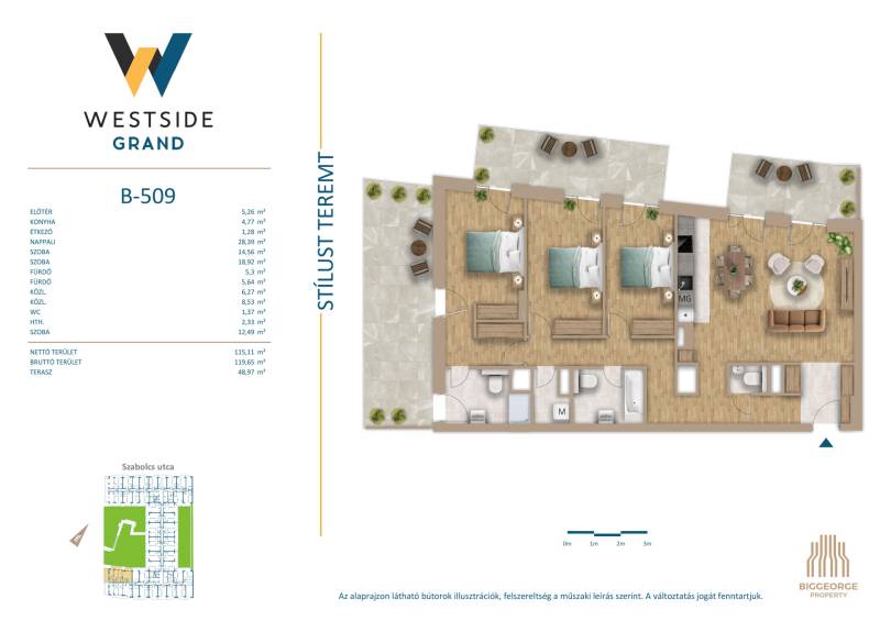 Projekt bemutatásaA PROJEKTRŐLA Westside Grand I-II. a Biggeorge Property Westside fejlesztés sorozatának - a Westside Residence és a Westside Gardent követően - legújabb tagja.LOKÁCIÓBudapest egyik leggyorsabban fejlődő kerületének központi területén, a XIII. kerületben, a Városligettől és a megújuló Nyugati pályaudvartól sétatávolságra épül. A Nyugati pályaudvar környéke az elkövetkezendő években szinte teljesen megújul, a XIII. kerületben elhelyezkedő Szabolcs utcában, illetve közvetlen környezetében számos új építésű ingatlan épült, melyek jelentős értéknövekedést kínálnak a környéken ingatlant vásárlóknak. A több ütemben megvalósuló lakóingatlanfejlesztések hatalmas zöld parkot ölelnek körül, így a lakók akár az erkélyen ülve is élvezhetik a csendet, nyugalmat és zöld környezetet egy központi, belvárosi környezetben is.
