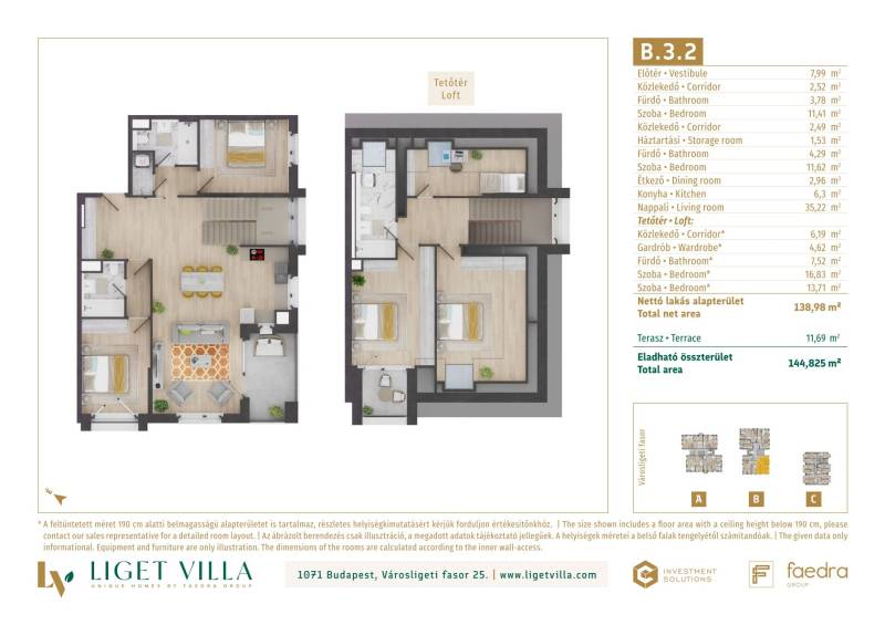 Projekt bemutatásaAki többre vágyik, mint egy átlagos lakópark, most hazaérkezett! Itt élni, itt lakástulajdonosnak lenni, egyet jelent a minőséggel.Az épületrőlA pesti diplomatanegyed legszebb utcájában épül, a megjelenésében, műszaki tartalmában és a lakáskínálata tekintetében egyaránt unikális, Liget Villa Lakópark. Az épületbe érve, egy elegáns lobby és recepcióra érkezünk majd. Innen a három épületet egy kerti úton, passzázs köti majd össze. A tervezés során nagy hangsúlyt kapott a családi igényekre tervezett lakás minőségi használhatósága. Ablakos konyhák, master bedroom-ok, dupla fürdőszobák, gardrób és háztartási helyiségek is helyet kapnak a lakásban. Kiemelten jól bútorzható, két irányba tájolt lakások kerülnek kialakításra. A földszinti lakásokhoz 50-100 m2-es privát kertek, míg a közös területeken tájépítész által tervezett reprezentatív kertet alakítunk ki. A lakásokban mennyezeti hűtés-fűtés biztosítja a téli-nyári kellemes komfortérzetet. A nyílászárók 3 rétegű üveggel, alu-fa kivitelben kerülnek beépítésre. A lakások ára tartalmazza alapárban az alu elektromos redőnyöket és okosotthon kiépítést is. Magas minőségű olasz és spanyol hidegburkolatválasztékban akár 60x60 cm-es lapok is válaszhatóak majd. A fa parketta és az átlag feletti minőség szaniterek, szintén alapárban válaszhatóak a lakásokba. Az épületek alatti mélygarázsban gépkocsibeállók és tárolók kerülnek kialakításra. A környékről:A környék közlekedése kiváló. 5 perc sétával elérhető a Andrássy úton a kisföldalatti. A szomszédos Balzac utcában és Dózsa György úton is számos buszjárat és troli is közlekedik. A város számos pontjára, akár átszállás nélkül is eljuthatunk. Ha pedig autóval közlekedünk, az M3 autópálya pár perc alatt elérhető. A Városligeti fasor két oldalán található szervízúton, parkolnia is lehet a Liget Villa Lakóparkba érkezőknek.Előnyök:A Liget Villa Lakpark lakásai, tökéletes választás azoknak, akik szeretnék élvezni a városi kényelmet anélkül, hogy lemondanának a természet közelségéről és a csendes életformáról. A belváros és a zöld liget is sétatávolságban elérhető. A gyerekek számára paradicsom a Városliget. Játszóterek, tó, sportpályák, állatkert, minden, amit egy gyerek csak kívánhat egy parkban. A közelben pedig a kultúrát és a sportos életformát kedvelők, egyaránt megtalálják a számukra fontos helyszíneket. Néprajzi, Szépművészeti, Mezőgazdasági múzeumok, a Magyar Zene Háza, a Műcsarnok mind-mind gazdag élményt nyújtanak az oda látogatóknak. A Városliget fasor pedig már önmagában egy oázis a városi környezetben. Hatalmas gesztenyefák, gyönyörű villaépületek, követségek, gimnázium, templom mellett sétálhatunk el nap mint nap. Ide nagyon jó lesz minden nap hazajönni.