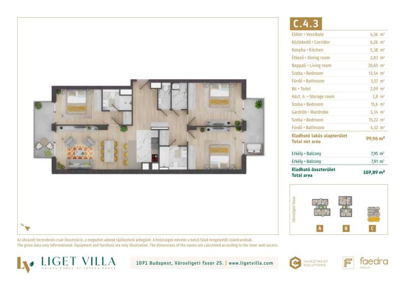 Projekt bemutatásaAki többre vágyik, mint egy átlagos lakópark, most hazaérkezett! Itt élni, itt lakástulajdonosnak lenni, egyet jelent a minőséggel.Az épületrőlA pesti diplomatanegyed legszebb utcájában épül, a megjelenésében, műszaki tartalmában és a lakáskínálata tekintetében egyaránt unikális, Liget Villa Lakópark. Az épületbe érve, egy elegáns lobby és recepcióra érkezünk majd. Innen a három épületet egy kerti úton, passzázs köti majd össze. A tervezés során nagy hangsúlyt kapott a családi igényekre tervezett lakás minőségi használhatósága. Ablakos konyhák, master bedroom-ok, dupla fürdőszobák, gardrób és háztartási helyiségek is helyet kapnak a lakásban. Kiemelten jól bútorzható, két irányba tájolt lakások kerülnek kialakításra. A földszinti lakásokhoz 50-100 m2-es privát kertek, míg a közös területeken tájépítész által tervezett reprezentatív kertet alakítunk ki. A lakásokban mennyezeti hűtés-fűtés biztosítja a téli-nyári kellemes komfortérzetet. A nyílászárók 3 rétegű üveggel, alu-fa kivitelben kerülnek beépítésre. A lakások ára tartalmazza alapárban az alu elektromos redőnyöket és okosotthon kiépítést is. Magas minőségű olasz és spanyol hidegburkolatválasztékban akár 60x60 cm-es lapok is válaszhatóak majd. A fa parketta és az átlag feletti minőség szaniterek, szintén alapárban válaszhatóak a lakásokba. Az épületek alatti mélygarázsban gépkocsibeállók és tárolók kerülnek kialakításra. A környékről:A környék közlekedése kiváló. 5 perc sétával elérhető a Andrássy úton a kisföldalatti. A szomszédos Balzac utcában és Dózsa György úton is számos buszjárat és troli is közlekedik. A város számos pontjára, akár átszállás nélkül is eljuthatunk. Ha pedig autóval közlekedünk, az M3 autópálya pár perc alatt elérhető. A Városligeti fasor két oldalán található szervízúton, parkolnia is lehet a Liget Villa Lakóparkba érkezőknek.Előnyök:A Liget Villa Lakpark lakásai, tökéletes választás azoknak, akik szeretnék élvezni a városi kényelmet anélkül, hogy lemondanának a természet közelségéről és a csendes életformáról. A belváros és a zöld liget is sétatávolságban elérhető. A gyerekek számára paradicsom a Városliget. Játszóterek, tó, sportpályák, állatkert, minden, amit egy gyerek csak kívánhat egy parkban. A közelben pedig a kultúrát és a sportos életformát kedvelők, egyaránt megtalálják a számukra fontos helyszíneket. Néprajzi, Szépművészeti, Mezőgazdasági múzeumok, a Magyar Zene Háza, a Műcsarnok mind-mind gazdag élményt nyújtanak az oda látogatóknak. A Városliget fasor pedig már önmagában egy oázis a városi környezetben. Hatalmas gesztenyefák, gyönyörű villaépületek, követségek, gimnázium, templom mellett sétálhatunk el nap mint nap. Ide nagyon jó lesz minden nap hazajönni.