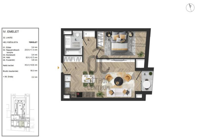 XIII. kerület zöldövezeti városnegyedében 33 lakásos társasház- liftes társasház- 2 szobás ingatlan- 43,4 nm (+ 3,7nm) alapterületű, 2,2 nm-es terasszal- 4.emeleti, keleti fekvésű- 2 szobás (amerikai konyhás nappali + 1 háló)- fűtés, hűtés: levegős hőszivattyús rendszert használ, mennyezeti fűtés-hűtés kialakítással- a lakás belső ajtókkal, burkolatokkal, szaniterekkel kerül átadásra- gépkocsi beálló külön vásárolhatóTovábbi információval, megtekintéssel kapcsolatban keressen bizalommal!Projekt bemutatásaXIII. kerület kertvárosi, zöldövezeti negyedének központjában kimagasló műszaki felszereltséggel rendelkező lakások várják új tulajdonosaikat.Az ingatlanok modern kialakítása, látványos homlokzata, valamint a hőszivattyús fűtésrendszerük által biztosított alacsony rezsiköltség ideális választást jelentenek igényes, tudatos vásárlók és ingatlanbefektetők számára.A projekt keretén belül egy 33 lakásos, modern, újépítésű társasház kerül felépítésre.Főbb jellemzők:• a projekt egy 33 lakásos emelt minőségű, társasházi beruházás keretein belül valósul meg• a társasházban 33 személygépkocsi beállóhely található a -1-es pinceszinten• a kiválasztott lakásokhoz tároló helyiségek is vásárolhatók, akár önállóan akár közvetlen autóbeálló kapcsolattal is• a lakások 30-84 m² közötti változó méretűek, elrendezésben a garzontól az egy- két- és három hálószobásig választhatóak• a földszinti lakások mindegyike saját privát kerttel és/vagy nagy alapterületű terasszal rendelkezik•az épület összes lakó egysége saját-kizárólagos használatú erkéllyel, terasszal és/vagy loggiával rendelkezik•A Beruházó, a DBI Ingatlanhasznosító Kft. több, mint 20 éves tapasztalattal rendelkezik a magyarországi ingatlanpiacon.Akciós áraink a feltüntetett fizetési ütemezés mellett vehetőek igénybe.Fizetési ütemezés: 80-20%A lakások várható birtokbaadása: 2025. III. negyedévJelenlegi készültségi fok: 85%