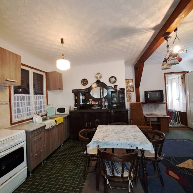 Balatonkenesén eladásra kínálunk, szép csendes környezetben és gyönyörű panorámával elhelyezkedő telket 80 m2-es könnyűszerkezetű nyaralóval, a GDN Ingatlanhálózat kínálatából.Az ingatlan tulajdonságai:- A ház 40 m2 alapterületű, amely előtérből, konyha-nappaliból, hálószobából és fürdőszoba-WC-ből áll. Alatta pince található, amely szintén 40 m2-es, illetve a tetőtér is beépíthető. - A telek nagysága 1500 m2, jelenleg fúrt kút adja a vizellátást a házba és villany közművel rendelkezik, csatorna nincsen ugyan, de saját derítő igen.- A fűtést télen a elektromos fűtőpanel, valamint kandalló adja.- A parkolás a telek előtt lehetséges, de az új tulajdonos kialakíthat a telken belül is autóbeállót.- A ház nyílászárói fából készültek, zsalugáteres és szúnyoghálóval ellátott.- Igazán rendezett, gazdálkodásra is kiváló a telek, hiszen jelenleg is veteményes kert és több gyümölcsfa is található a kertben.- Az ingatlanhoz buszmegálló kb 25 perc sétára található. Ajánlom pihenni vágyó családoknak, a természetet imádóknak, önnfenntartó gazdálkodást kedvelőknek és akik szeretik a Balatont!Ne hagyja ki ezt a remek lehetőséget!Amennyiben a veszprémi GDN Ingatlaniroda által kínált telek nyaralóval, vagy bármely, a kínálatunkban található ingatlan felkeltette érdeklődését, forduljon hozzám bizalommal!Ingatlanirodánk díjmentes, banksemleges hitelügyintézéssel, illetve ügyvédi tanácsadással is áll Ügyfeleink rendelkezésére!