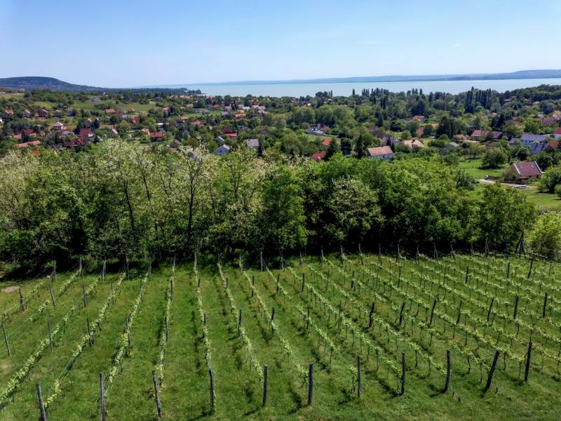 Szívesen kávézna minden reggel egy elképesztően gyönyörű Balatoni örök panorámás erkélyen?Akkor Ábrahámhegyen van a helye. Építse meg itt álomotthonát vagy nyaralóját.A terület enyhén lejtős, 3548m2-es szőlő és gazdasági épület besorolású. 3%- ban beépíthető,víz,villany a telken belül található.A pince és előkészítő helyiség alapterülete 45m2.A telek egy része szőlővel beültetett ( olaszrizling), a másik részén pedig akácos található.Elhelyezkedését tekintve kb.15 perces sétával megközelíthető a strand, a faluközpont, ahol kávézó és sportház is található.Önálló kikötővel rendelkezik, így a hajózni vágyóknak is remek lehetőség.Számos túra útvonal áll még rendelkezésre.Igényes szép és csendes környezetben terül el, a kilátás pedig magáért beszél.A helyi építési szabályzat szerint:(Mk-6) kertgazdasági mezőgazdasági terület (szőlőkataszteri területen)26.§ A gazdasági épülettel beépíthető minimális telekterület 2700 m2. Gazdasági épületet csak művelt telekre, legfeljebb 3 %-os beépítettséggel lehet építeni, de a létesíthető maximális beépített földszinti bruttó alapterület 150m2 lehet. Műveltnek az a telek minősül, amelynek legalább 80 %-án az ingatlan-nyilvántartás és a valós állapot szerint művelt szőlőkultúra található. A további építészeti feltételeket a külön jogszabályok határoznak meg. Az övezetben a talajelsodródást mérséklő művelési módokra való áttérés kötelező.