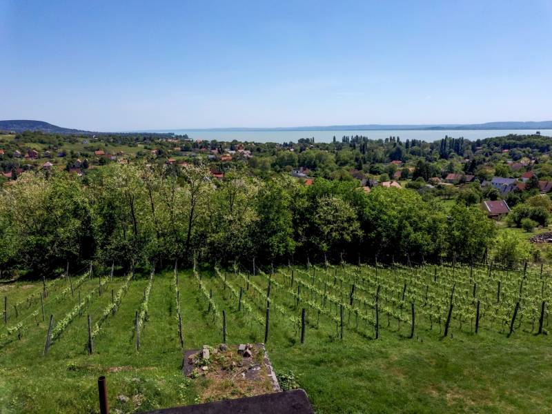 Szívesen kávézna minden reggel egy elképesztően gyönyörű Balatoni örök panorámás erkélyen?Akkor Ábrahámhegyen van a helye. Építse meg itt álomotthonát vagy nyaralóját.A terület enyhén lejtős, 3548m2-es szőlő és gazdasági épület besorolású. 3%- ban beépíthető,víz,villany a telken belül található.A pince és előkészítő helyiség alapterülete 45m2.A telek egy része szőlővel beültetett ( olaszrizling), a másik részén pedig akácos található.Elhelyezkedését tekintve kb.15 perces sétával megközelíthető a strand, a faluközpont, ahol kávézó és sportház is található.Önálló kikötővel rendelkezik, így a hajózni vágyóknak is remek lehetőség.Számos túra útvonal áll még rendelkezésre.Igényes szép és csendes környezetben terül el, a kilátás pedig magáért beszél.A helyi építési szabályzat szerint:(Mk-6) kertgazdasági mezőgazdasági terület (szőlőkataszteri területen)26.§ A gazdasági épülettel beépíthető minimális telekterület 2700 m2. Gazdasági épületet csak művelt telekre, legfeljebb 3 %-os beépítettséggel lehet építeni, de a létesíthető maximális beépített földszinti bruttó alapterület 150m2 lehet. Műveltnek az a telek minősül, amelynek legalább 80 %-án az ingatlan-nyilvántartás és a valós állapot szerint művelt szőlőkultúra található. A további építészeti feltételeket a külön jogszabályok határoznak meg. Az övezetben a talajelsodródást mérséklő művelési módokra való áttérés kötelező.