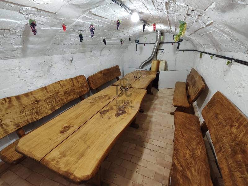 Ősiben ELADÓ 58 m2-es NYARALÓ + 6200 m2 körbekerített GYÜMÖLCSÖSSELIngatlan jellemzői:- 6204 m2-es telekre épült (besorolása szántó, szőlő és gazdasági épület)- betonblokk falazat- beton födémszerkezet- ácsolt fa tetőszerkezet, cserép fedéssel- fűtése: klímákkal megoldott (2db 3,5 kw-os GREE klíma)- meleg vizet ariston bojler szolgáltat- villany bekötve, 3x25 A- van egy 50 m fúrt kút a telken- szennyvíz emésztővel megoldott- pincében automata páraelszívók dolgoznak- hőszigetelt műanyag nyílászárók- csepegtető rendszerrel kiépített az egész terület- az összes fajta gyümölcsből ültettek ( közel 100 db gyümölcsfa)- ezen kívül, málna, szőlő, eper, mézbogyó stb..- az egész telek körbekerített- kamerarendszerrel kiépített a ház környékeAkár állandó lakhatásra is megoldható a ház.A település rohamosan fejlődik, az utak jó minőségűek. A faluban megtalálható gyógyszertár, orvosi rendelő, kisebb boltok, posta, általános iskola, óvoda.Várpalota 8 km-re, Veszprém és Székesfehérvár 25-25 km-re van. M7 felhajtó 18 perc, legközelebbi strandok a Balatonon 25-30 perc autóúttal elérhetőek.Ha felkeltette érdeklődését vagy további információk érdeklik, hívjon.Ha a vásárláshoz a jelenlegi ingatlana eladására van szükség, akkor abban is szívesen együttműködöm Önnel!Amennyiben hitelre, CSOK-ra, Babaváróra van szüksége, az Otthon Centrum az ország egyik legnagyobb és legmegbízhatóbb hitelközvetítőjeként, teljes körű és díjmentes hitel ügyintézéssel áll rendelkezésére.Kérje személyre szabott ajánlatunkat!