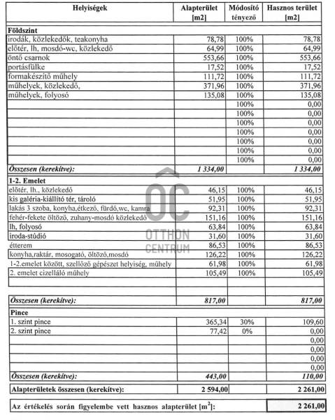 X.kerületben eladó 4000 m2-es ipari terület és a rajta álló, 2621 nm-es, 5 szintes tégla épület, 30 db parkolóval. Jelenleg több bérlője van az épületnek.Nagy épület jellemzői:Jó állapotú jelenleg is használatban van. Felosztás:Pince 200 m2, földszint 1100 m2, I. emelet 1100 m2, II. emelet 100 m2. Az ingatlan 1969-ben épült pince + földszint + l. emelet + részben 2. emelet kialakítású műhely, csarnok műhely, raktár, irodaként megépített épület. A pinceszint két szintes. A földszinti részen irodák, raktárnak kialakított helyiségek is kerültek kialakításra. Az emeleten fotóműhely, irodák, továbbá 1 db nappali+ két szobás lakás került kialakításra. Alapja betonsáv alap. A függőleges teherhordó szerkezet tégla falazat.Az épület alaprajzi kialakítása hagyományos, építési idejének megfelelő, állapota kívül átlagos. Belső terei évek óta folyamatos felújításon mennek keresztül. Cserélték a külső nyílás zárókat, burkolatokat, ateljes elektromos hálózatot, minden kiadásra alkalmas önálló helyiség külön altmérővel szerelt. A fűtést a gázról leválás után inverteres klímákkal a nagyobb terekben elektromos fűtőfóliával oldották meg. Ameleg vizet az irodai és lakó részen 2 db gázcirkó kazán radiátor hőleadókkal biztosítja. Szinte a teljes tetőszerkezet szórásos módszerrel szigetelve lett.Az ingatlan, Budapest X. kerületében a Gyárdülő városrészben helyezkedik el. Az ingatlan közvetlen környezetében szabadon álló beépítéssel cégek telephelyei, utcafronti oldalán a vasút, távolabb családi házak láthatók.Az ingatlant megközelíteni szabályozott, kiépített, szilárd burkolattal ellátott úton lehet.Infrastrukturális ellátottsága megfelelő, alap és szakszolgáltatást biztosító intézmények a közelben.Az ingatlan kamionnal megközelíthető korlátozás nélkül.