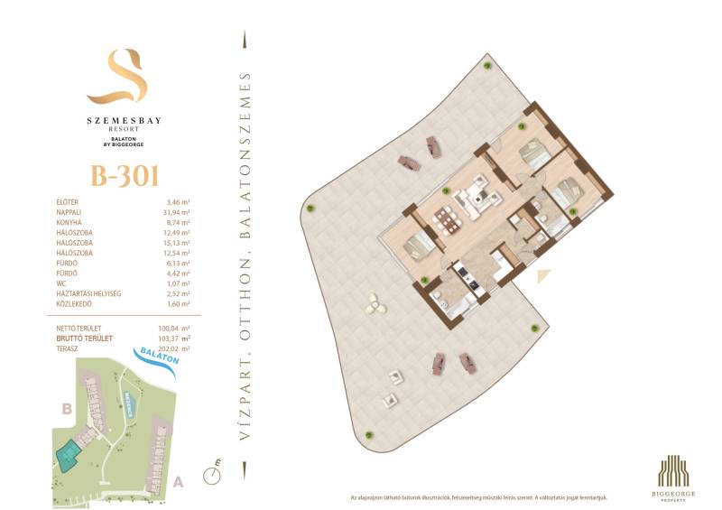 Projekt bemutatásaA DÉLI PART ÉKKÖVEBalatonszemes, a közel 2000 fős apró település ékköve a déli partnak. A 7-es főúton, illetve az M7-es autópályán közelíthető meg, Budapesttől 130 kilométerre fekszik.A vitorlás kikötő két oldalán fekvő szabad strandok, és a kikötő mellett lévő vendéglátó egységek egy meghitt, mégis élettel teli központot alkotnak.A PROJEKTRŐLA Szemesbay Resortban 153 lakást kínálunk, 33-107 m2 közötti méretekben, a leginnovatívabb építészeti megoldásokkal.A lakók minőségi és exkluzív időtöltését kültéri medence, szauna és jacuzzi biztosítja.Minden lakáshoz tágas terasz tartozik, parkolás az arra a célra kialakított mélygarázsban biztosított. Minden lakószint megközelítését lift biztosítja a teremgarázsból.A 2 épületben megvalósuló Szemesbay Resort lakásainak nagy része örökpanorámás kilátással rendelkezik a Balatonra, amellett, hogy a hangulatos belső kertre néz, emellett szinte minden lakástípus megtalálható a csendes Kikötő utcára néző homlokzaton, illetve a part felé néző homlokzaton is.Az épületek teljesítik a 7/2006. TNM rendelet közel nulla energiaigényű épületekre vonatkozó követelményeit.