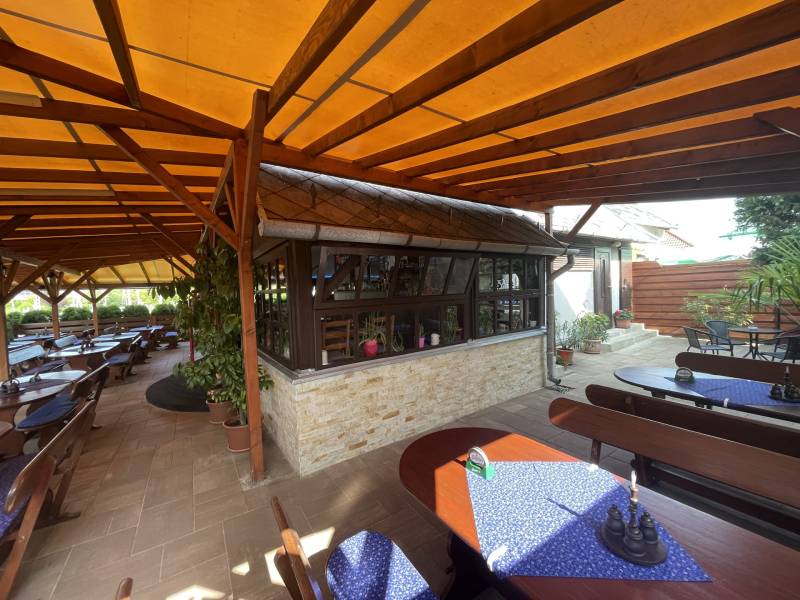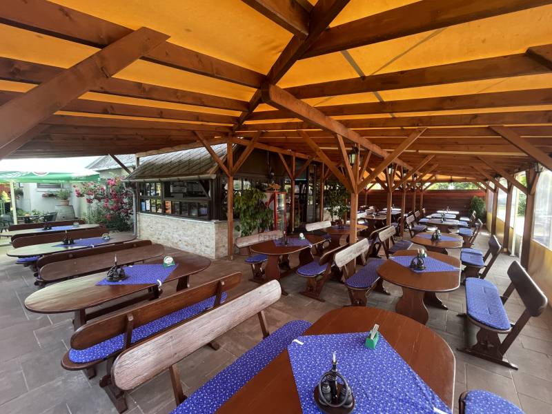 csak az Otthon Centrum kínálatában ne keresse máshol !Balatonkeresztúr központjától és parttól is 500 méterre új tulajdonosát várja egy több,mint 25 éve nyereségesen működő, népszerű, családias hangulatú étterem és a hozzátartozó nagy telekkel illetve a tetőtérben kialakított 3 szobával.. - Az épület kívül-belül folyamatos felújításon, karbantartáson, esik át. Ennak köszönhető, hogy evről évre több visszatérő vendéget vonz, mind belföldről, mind külföldről.- A létesítmény lelke az étterem és a hozzáépített szigetelt, fedett terasz. Folyamatos, ízletes konyhával, udvarias kiszolgálással csábítja a vendégeket,mivel 180 fő kényelmes befogadására alkalmas a vendéglő. Néhány szó az apartmanokról: Ízlésesen berendezettek, külön fürdővel és konyhával felszereltek. A hátsó udvarból megközelíthető nyeregtetős épület alsó szintje a konyha és különböző kiszolgáló helyiségek. Az épület tetőterében egy kis nappali és három hálószoba került kialakítasra.Parkolás a udvarban és a ház előtt kialakított parkolóban lehetséges.Ha Ön csak beruházásban gondolkozik és nem szeretne az üzemeltetéssel foglalkozni? Ez sem probléma!A jelenlegi tulajdonos szívesen vállalja az üzemeltetést megegyezés szerint.Részletes üzleti terveket, kimutatásokat, tulajdonossal történő konzultációt . Teljeskörű hitelügyintézéssel állok rendelezésére. csak tervezzen bátran, a többit bízza ránk.Hívjon ! Minden kérdésére válaszolok az ingatlannal kapcsolatban.